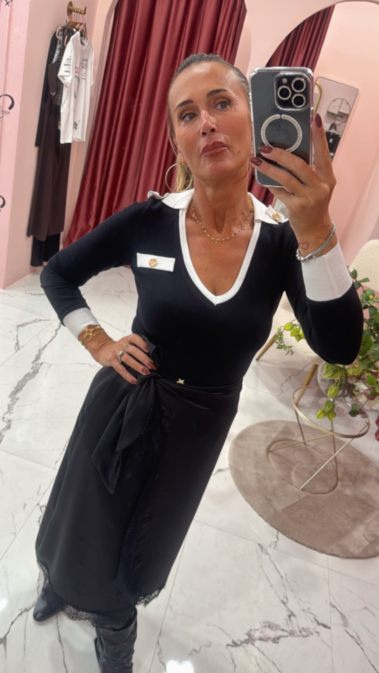 Body elasticizzato con colletto e bottoni oro