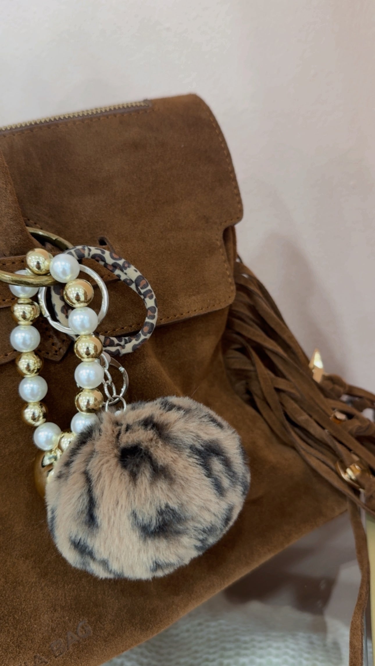 Borsa in camoscio e frange charms gioiello e Clips a cuore stella sulle frange inclusa tracolla