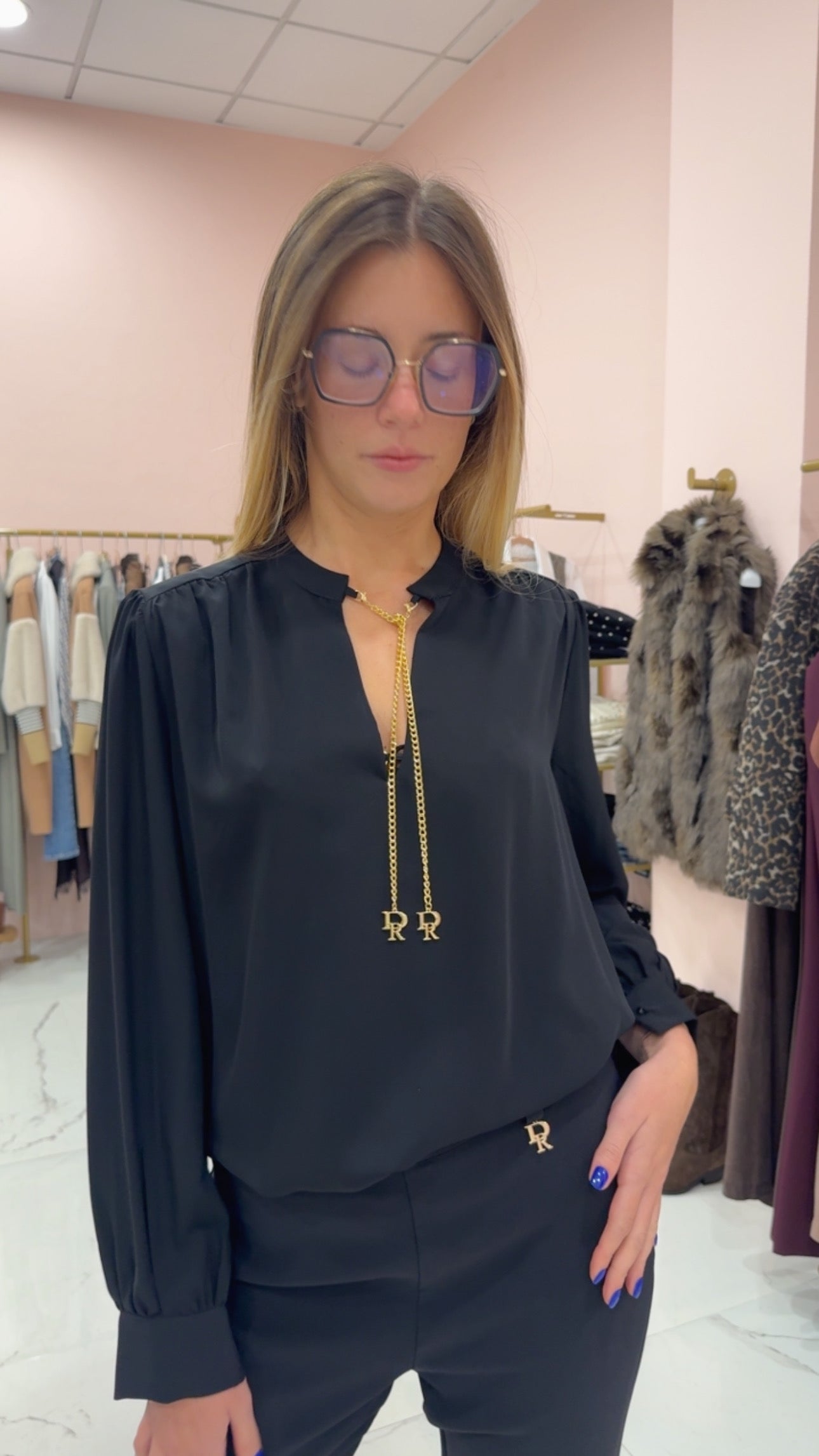 Camicia morbida scollo V con dettaglio strangolino catena logo