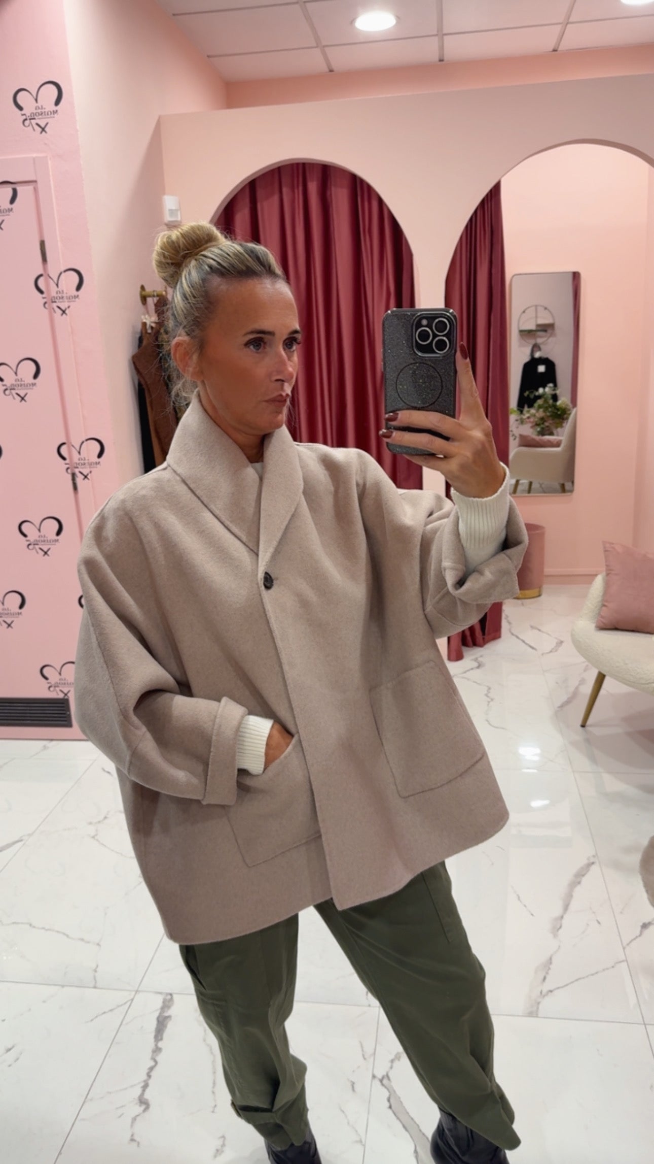 Cappotto corto Hand made con tasche ampie collo sciallato vestibilita over