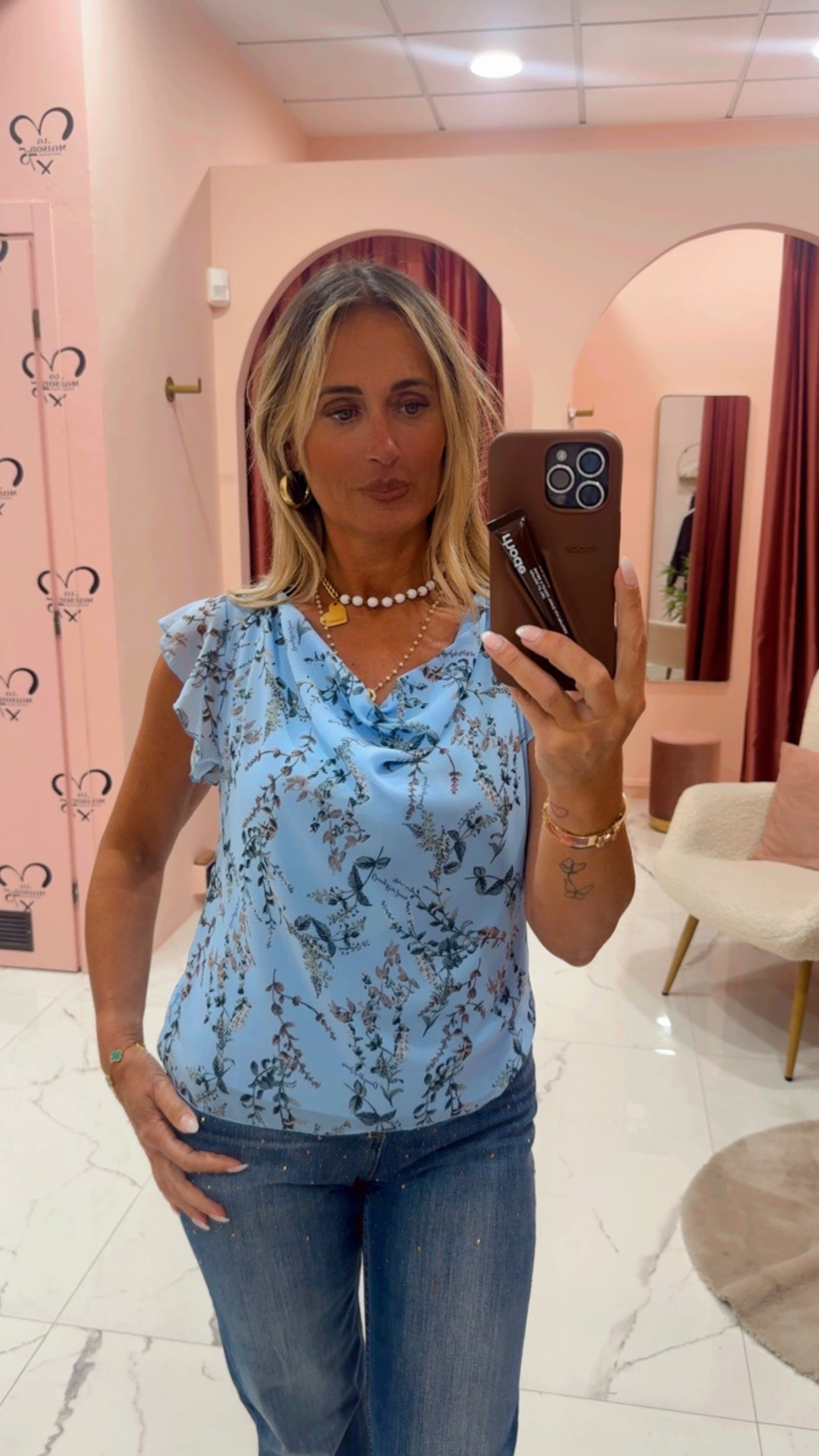Casacca manica farfalla fantasia floreale scollatura a madonna