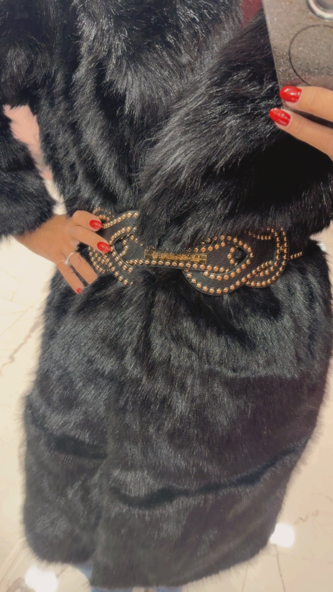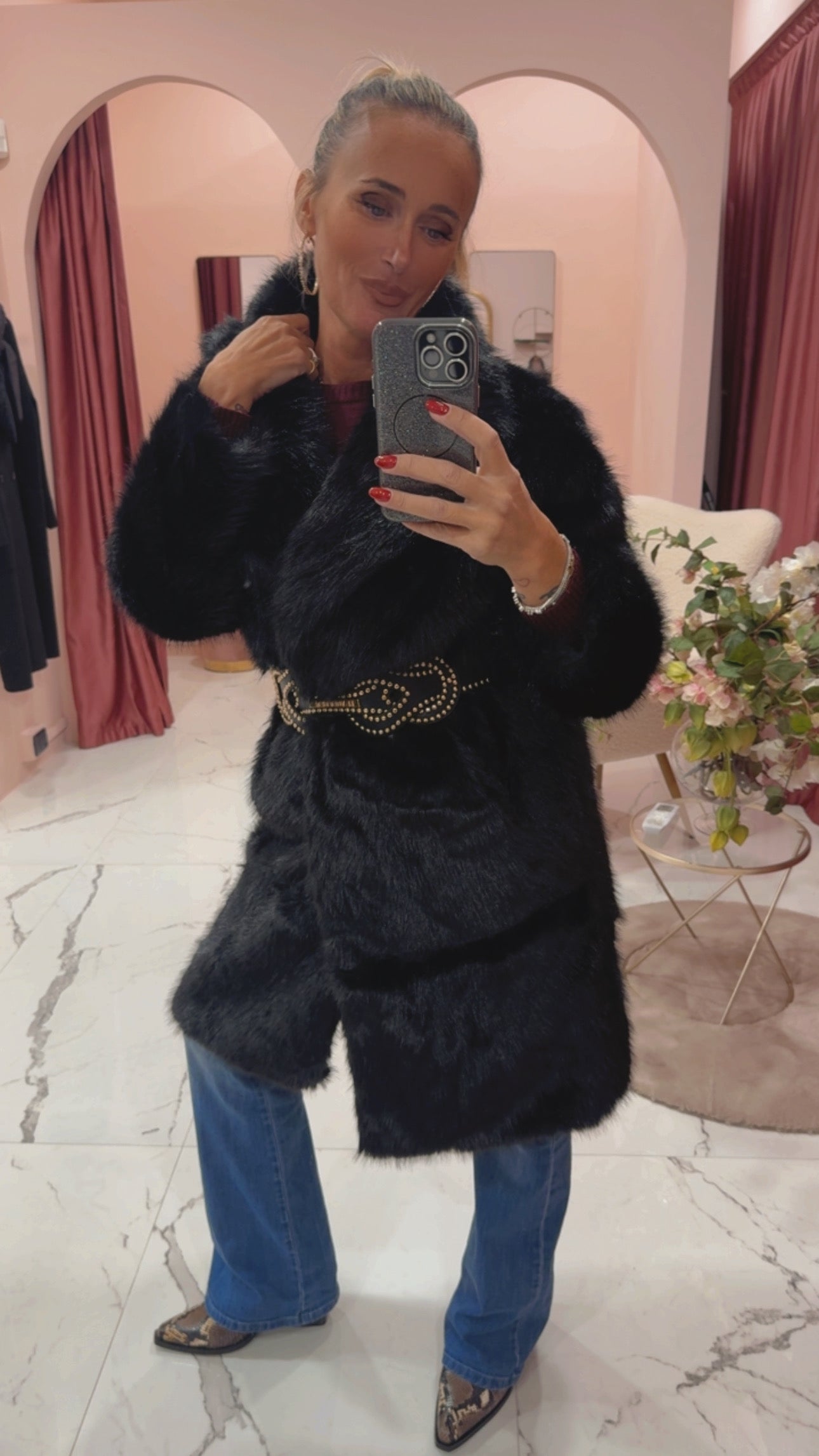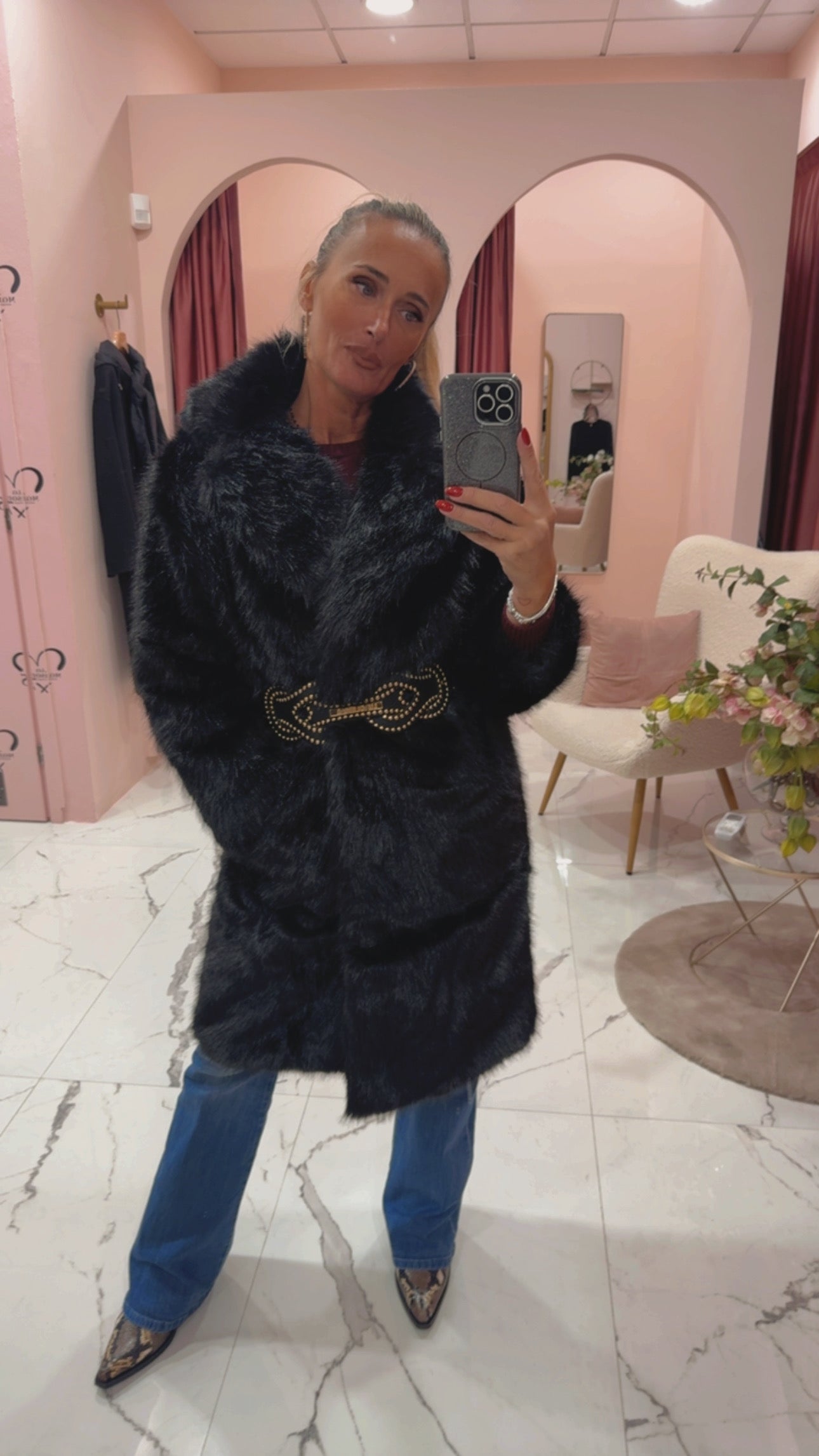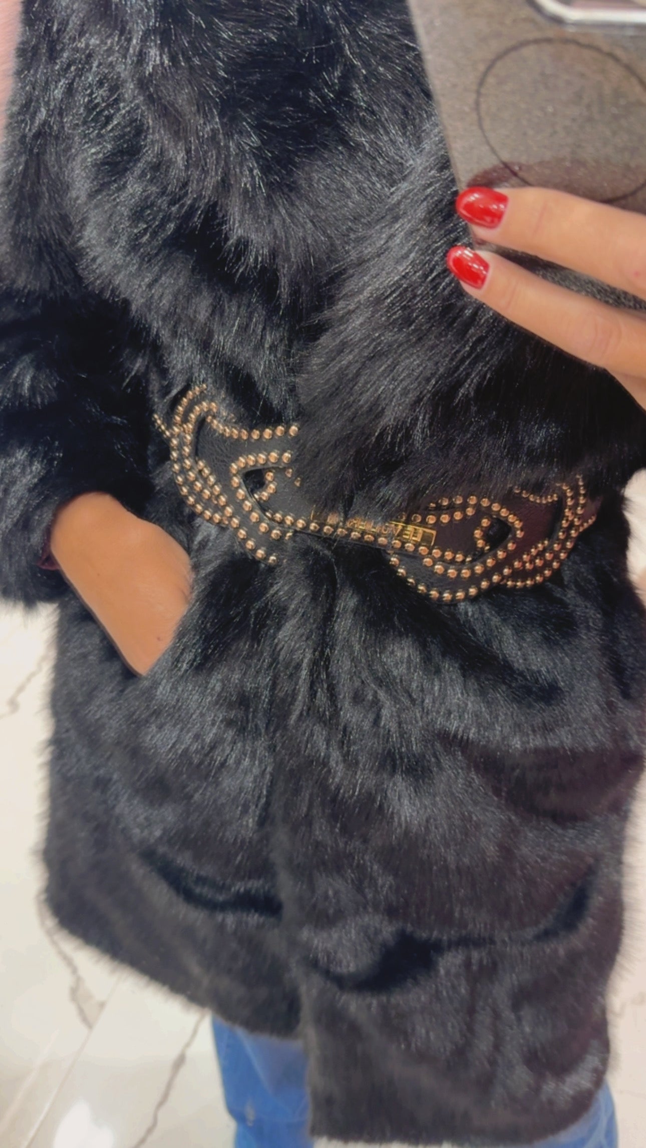 Ecopelliccia 3/4 con cintura in pelle e elastico
