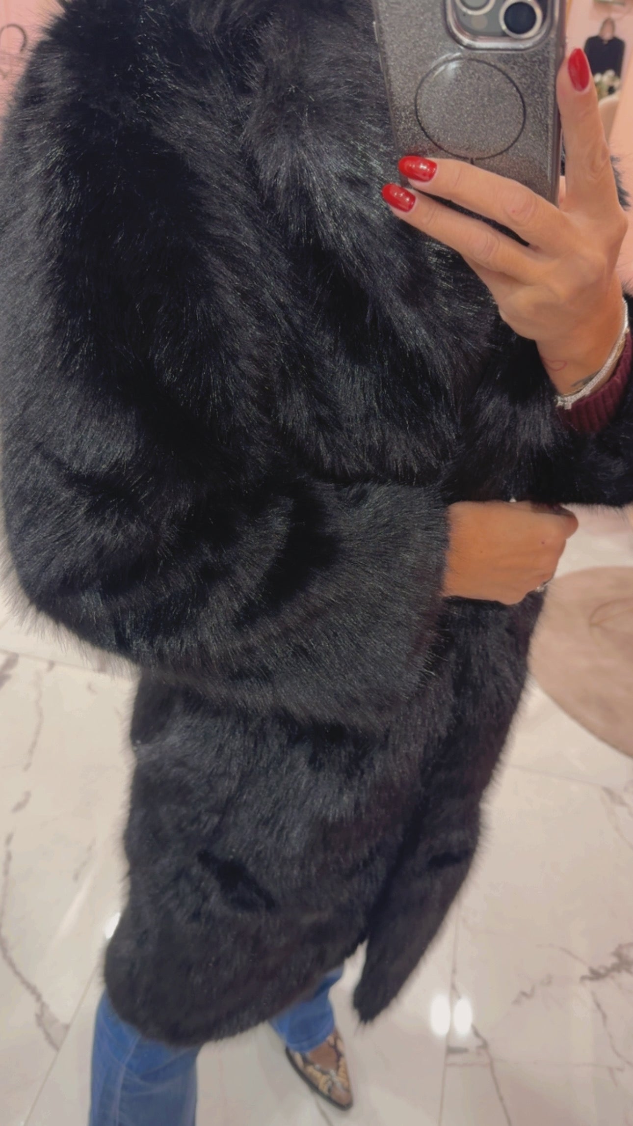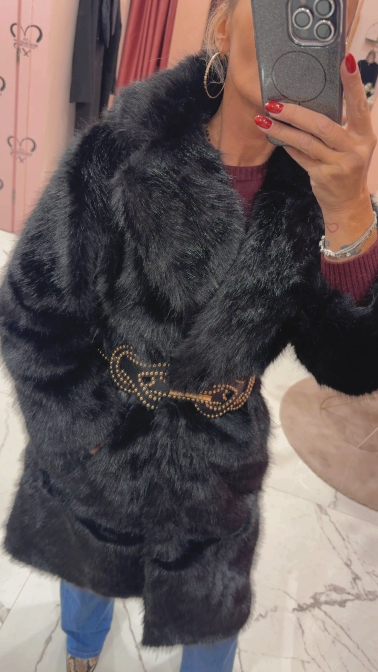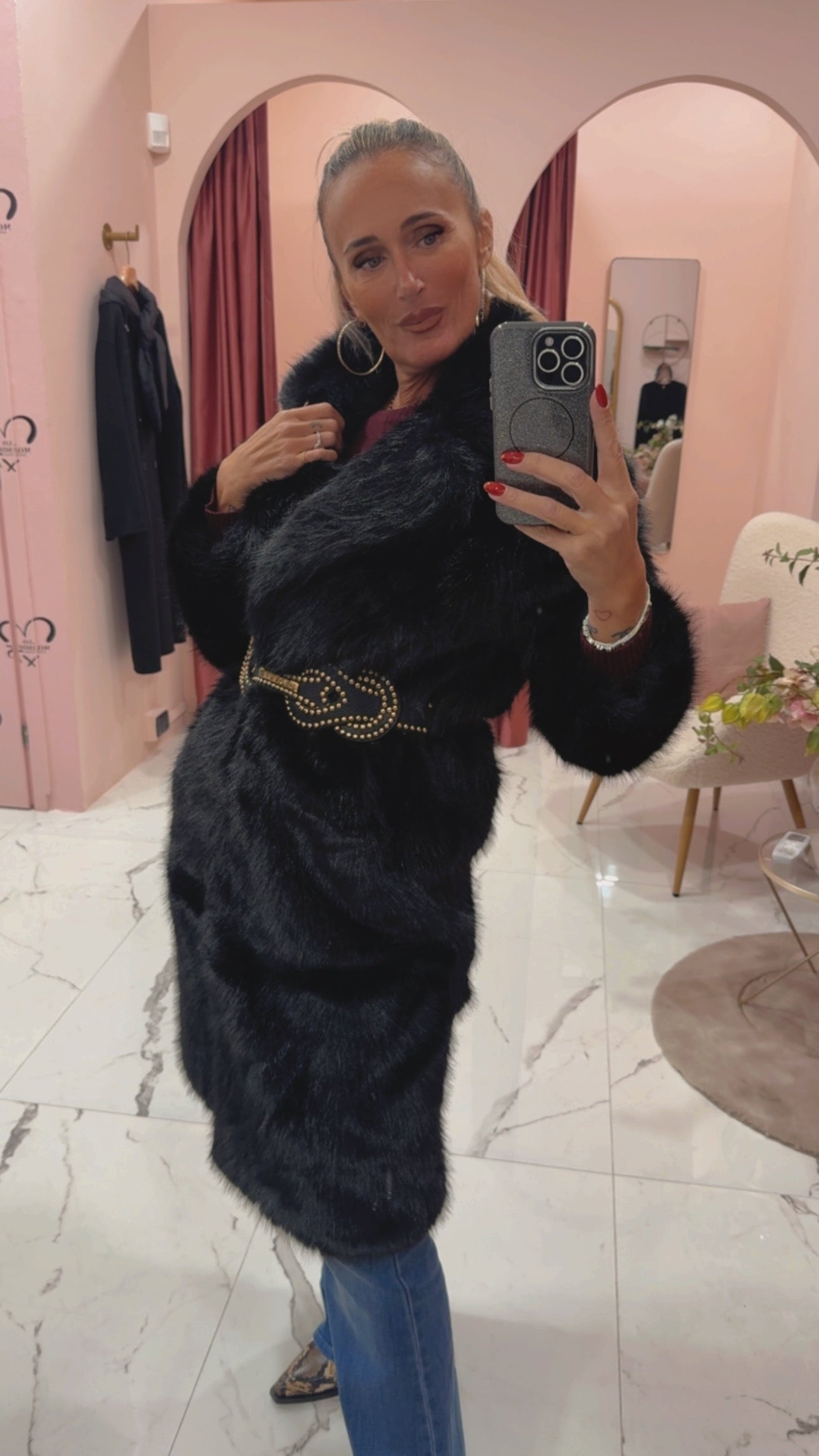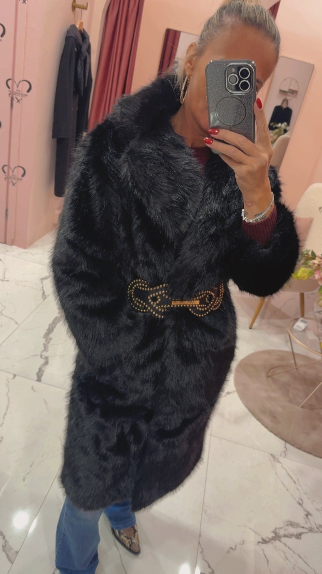 Ecopelliccia 3/4 con cintura in pelle e elastico