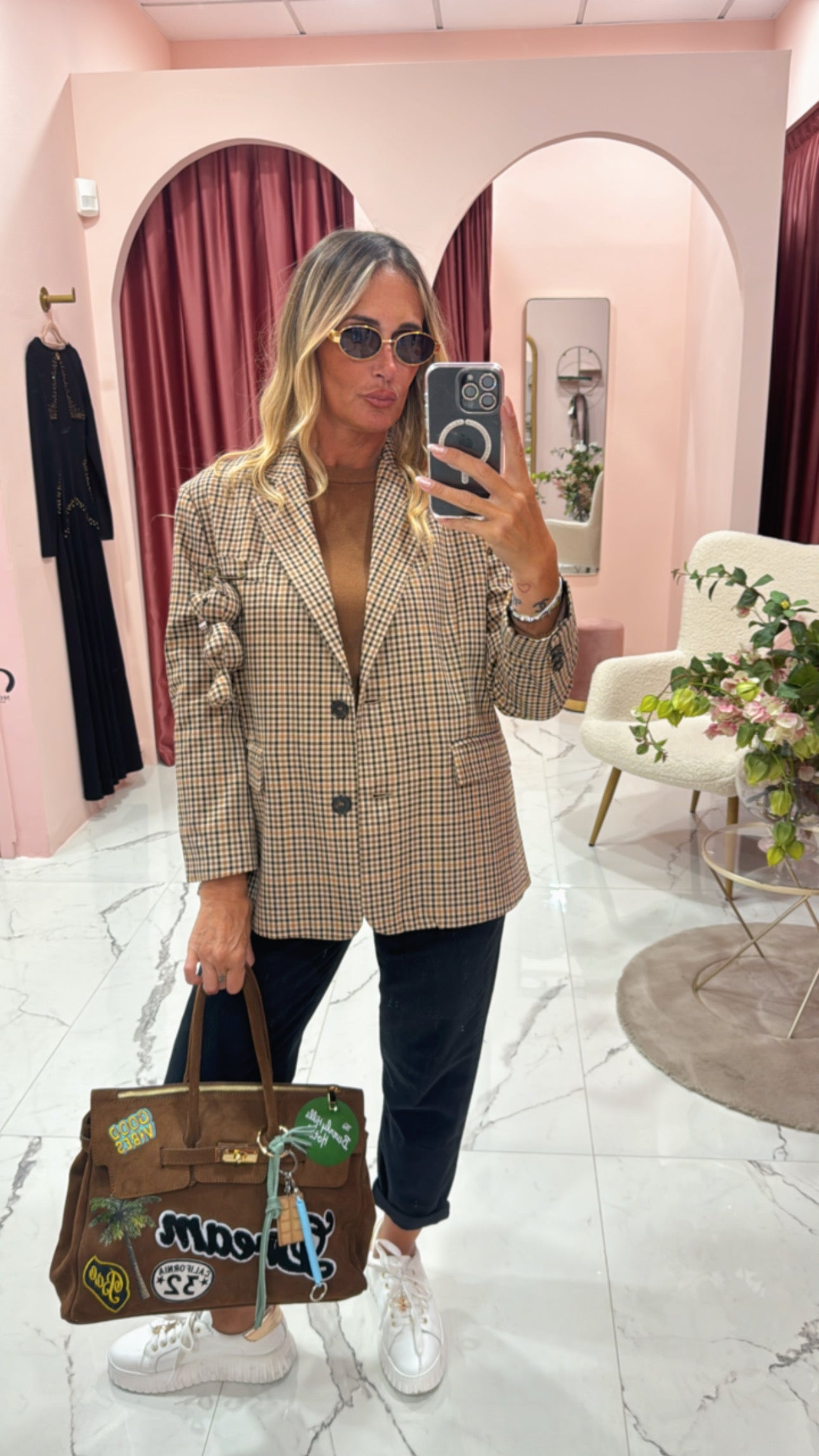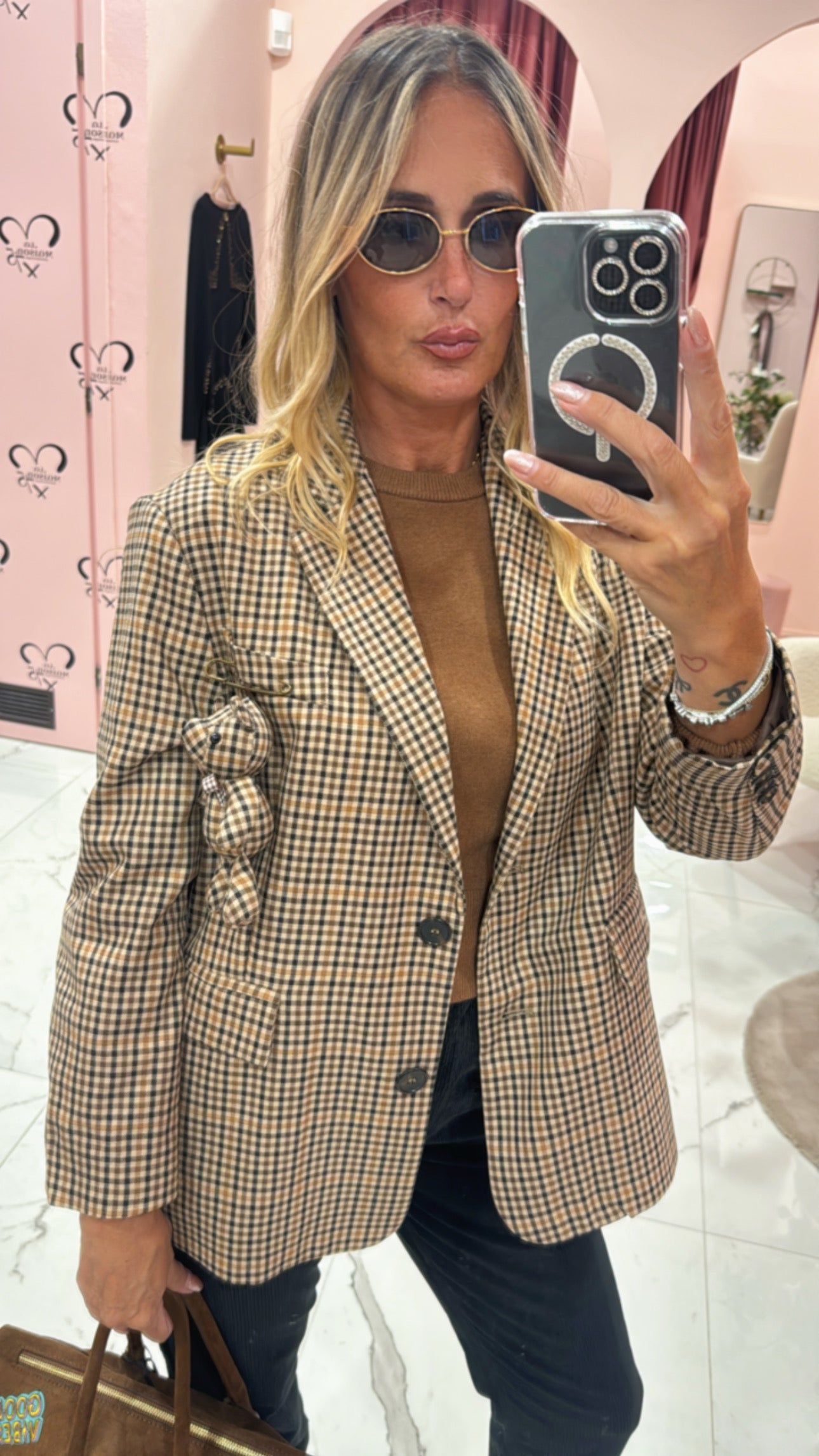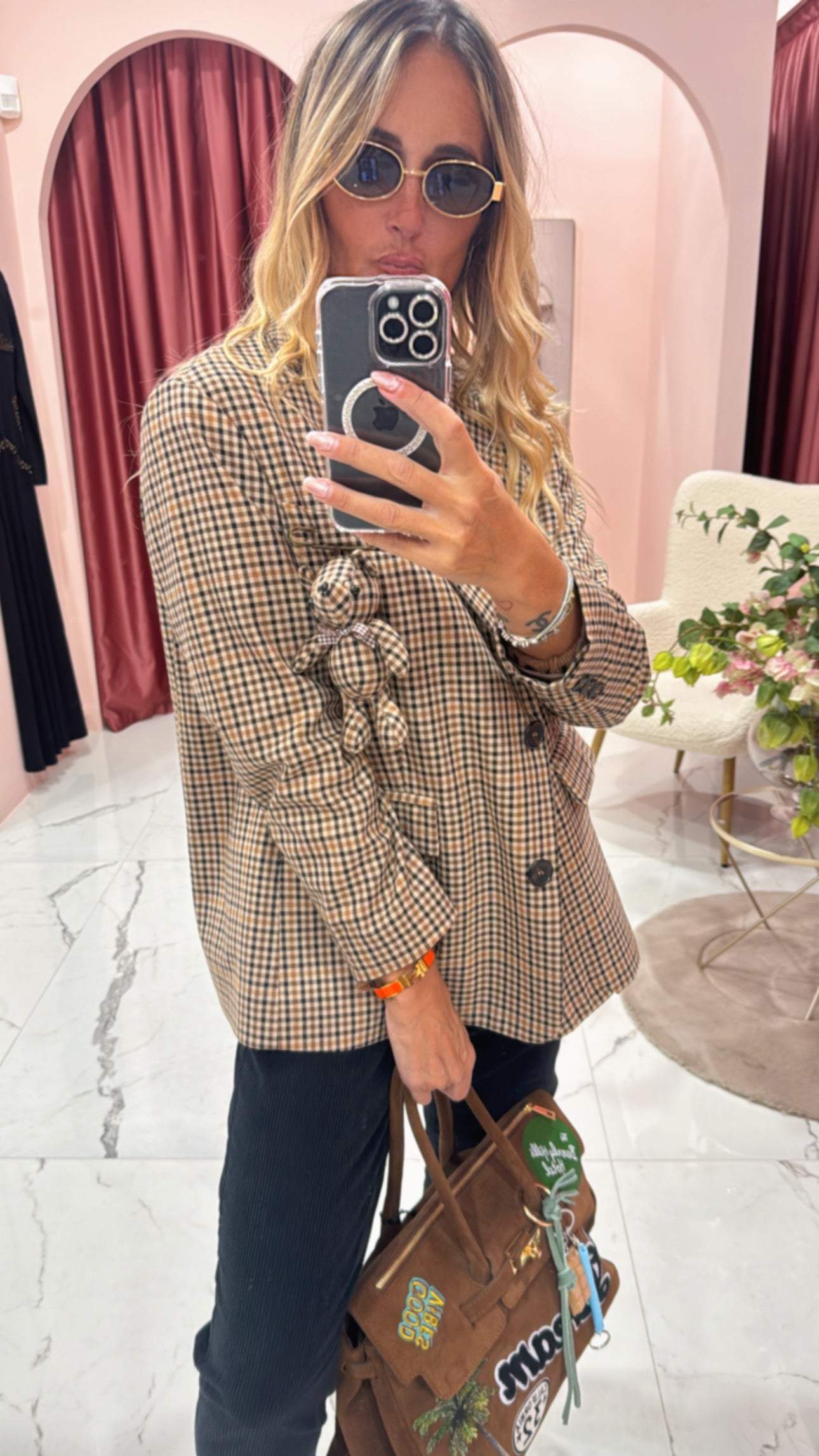 Giacca taglio quadrato con spilla orso