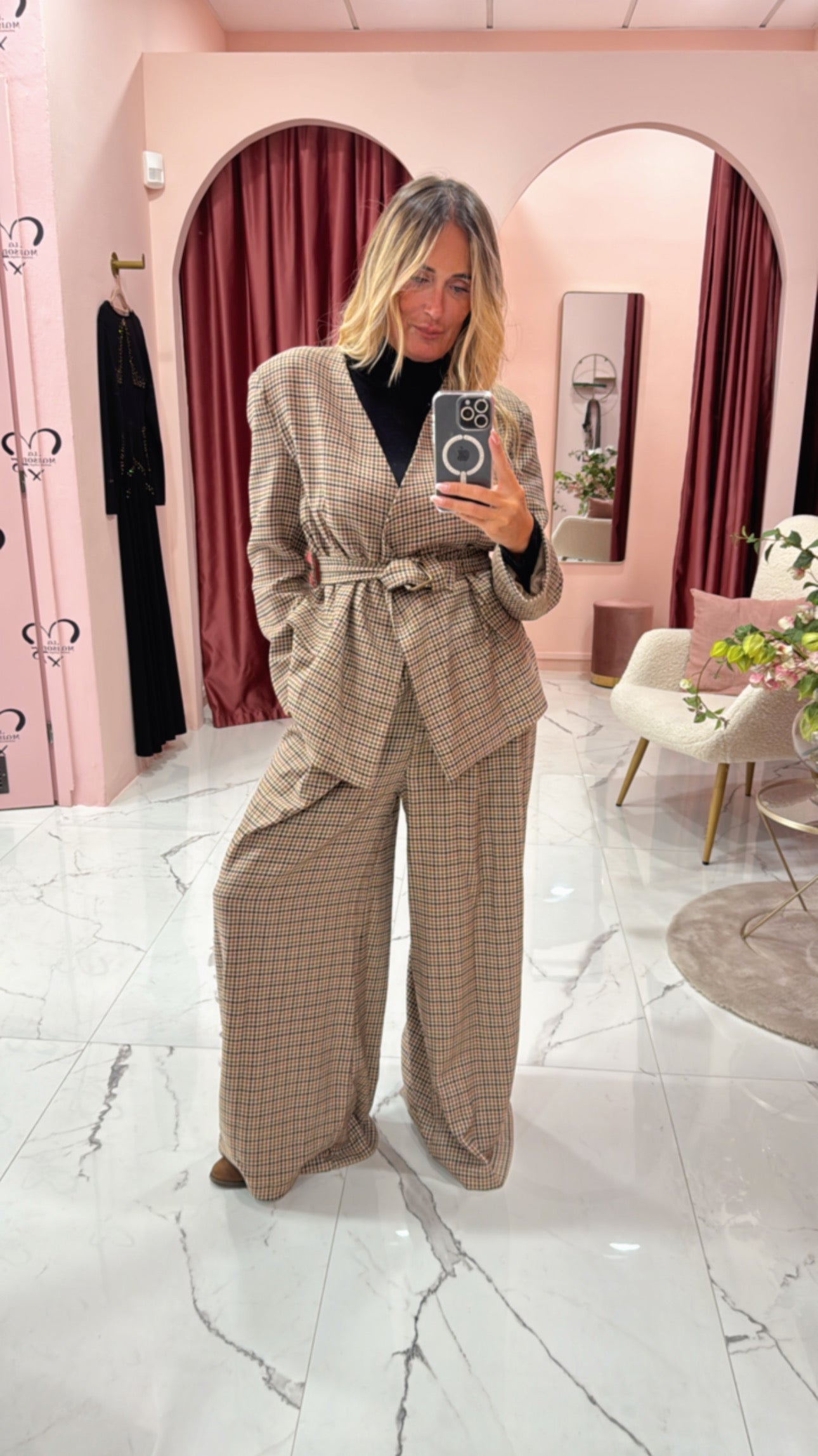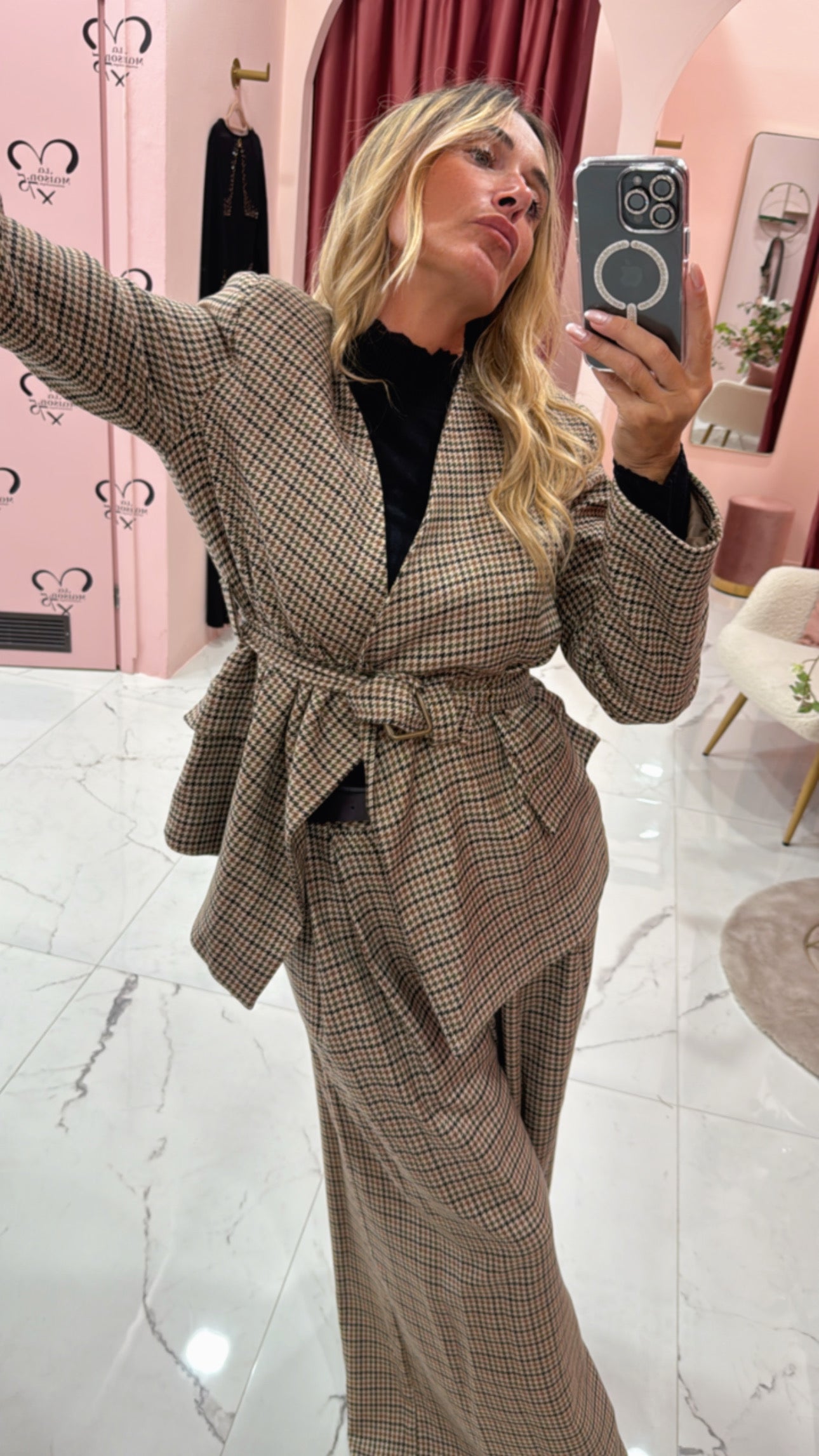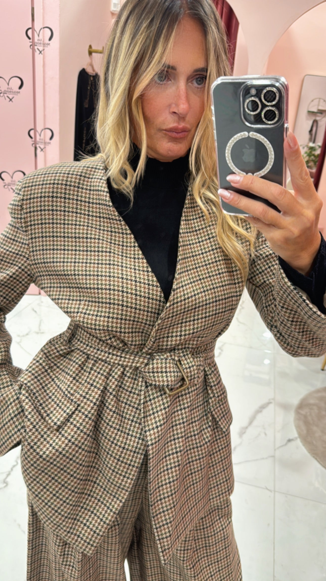 Giacca cinturata fit con spallina e collo sciallato
