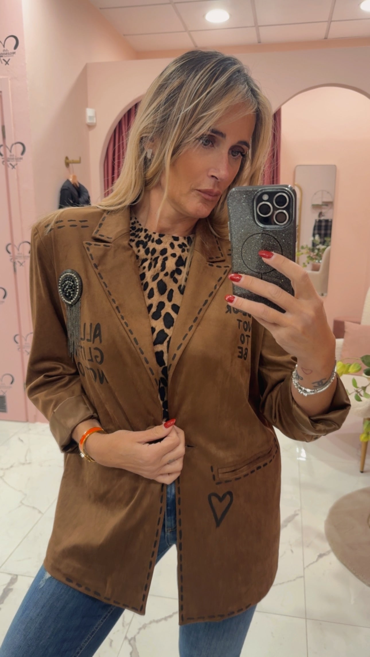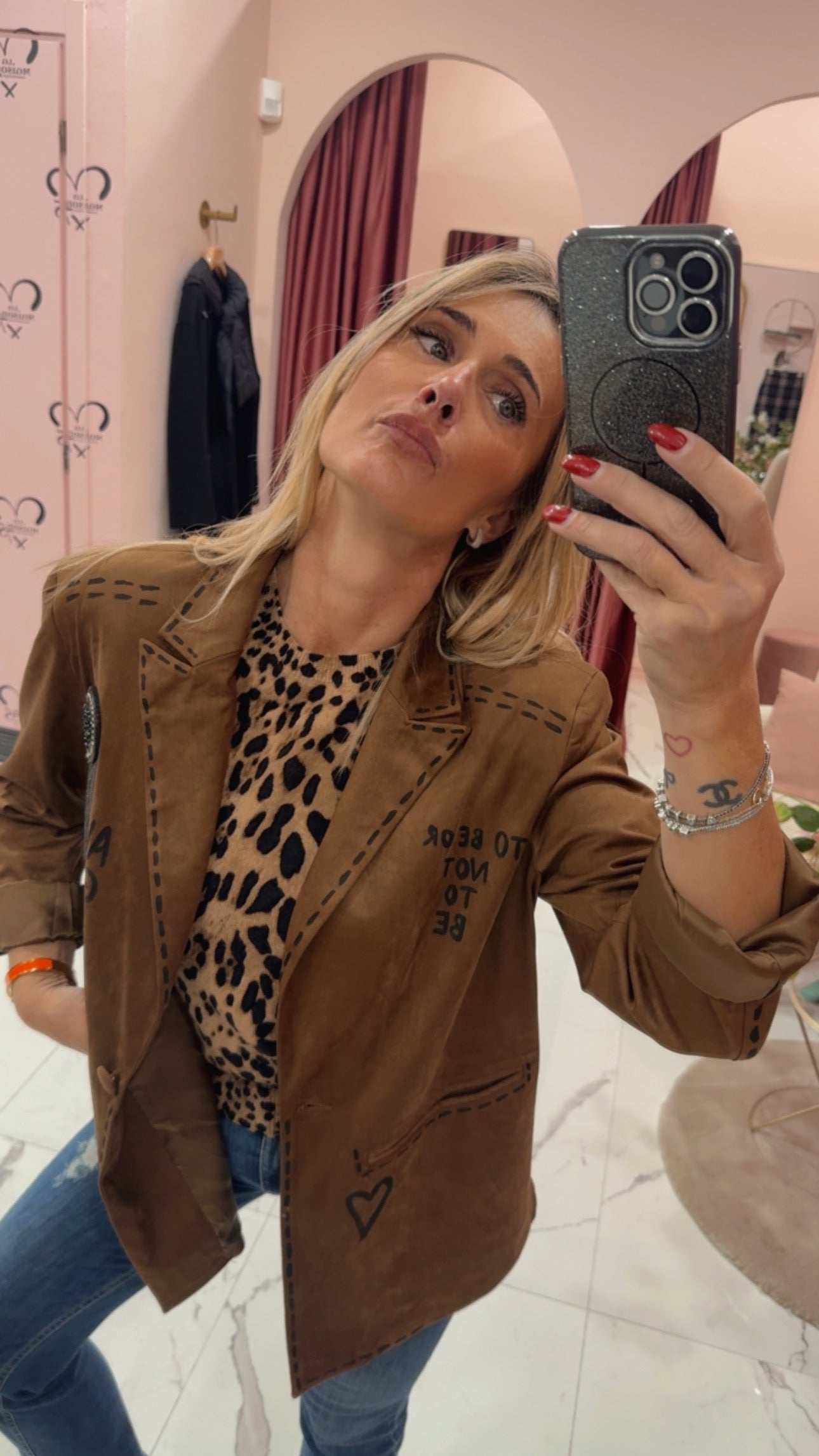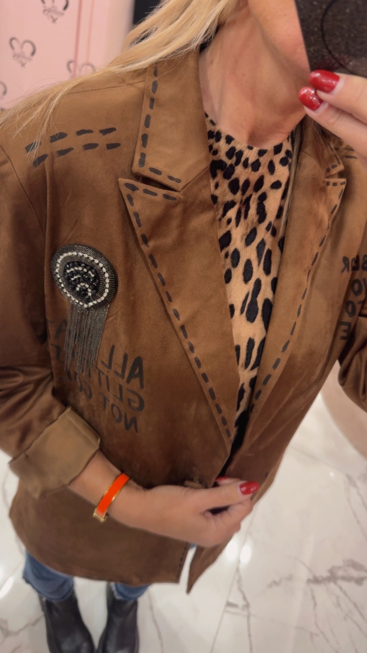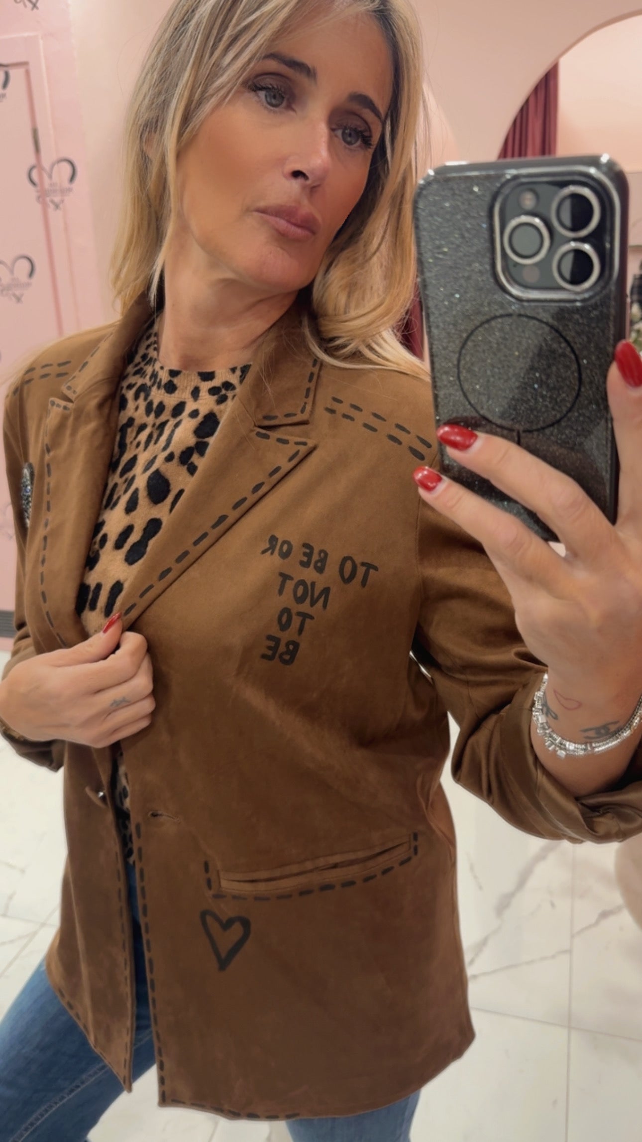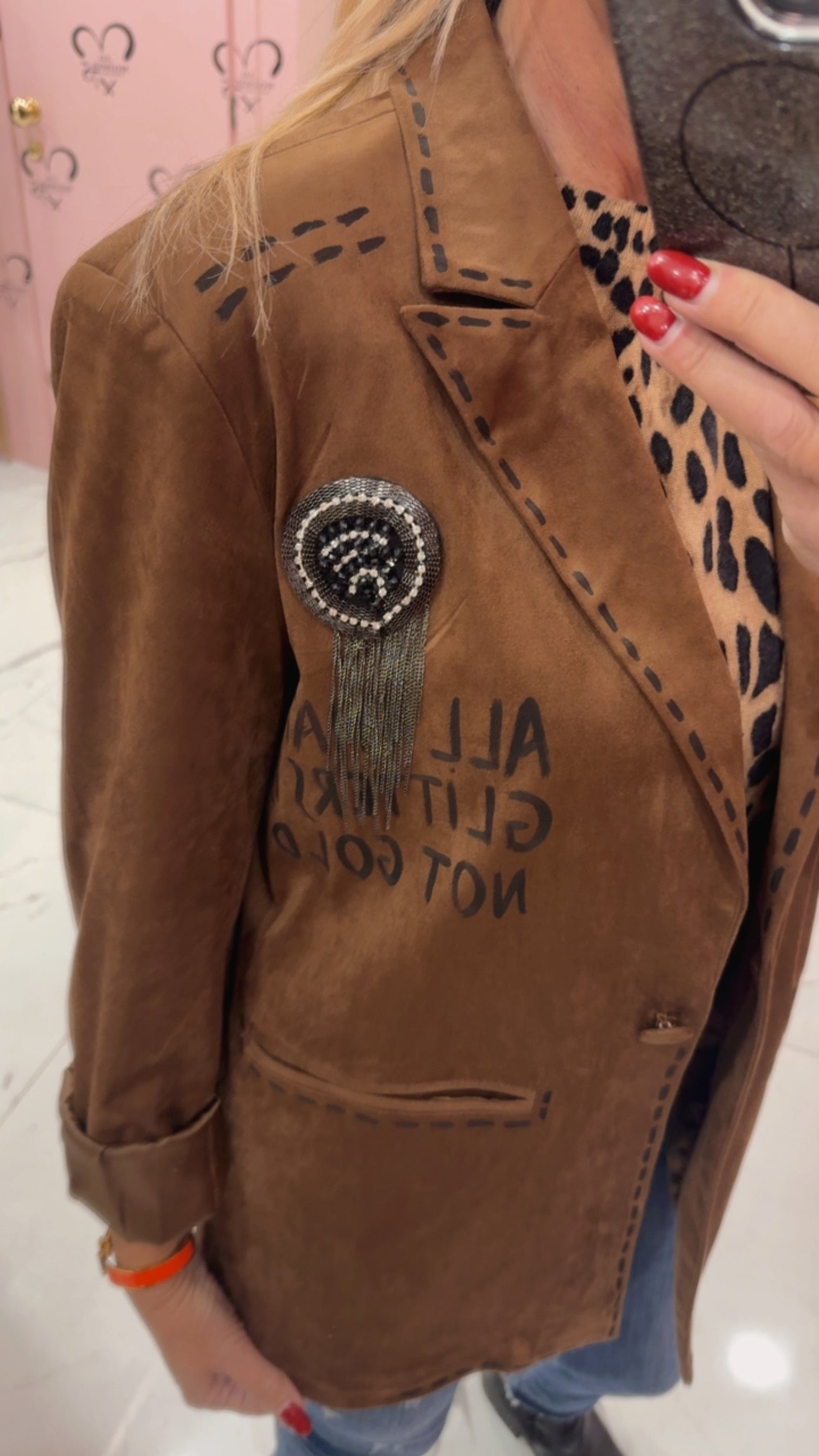Giacca eco daino customizzata con dettagli gioiello e dipinti fatti a mano