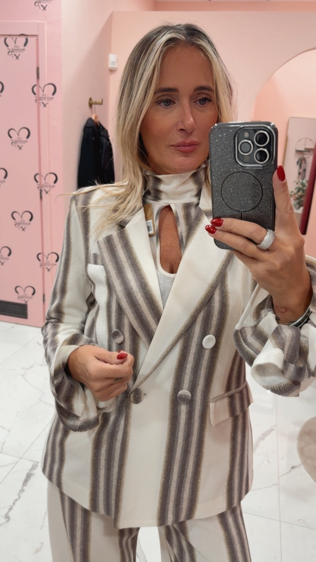 Giacca doppio petto con lavorazione punto maglia