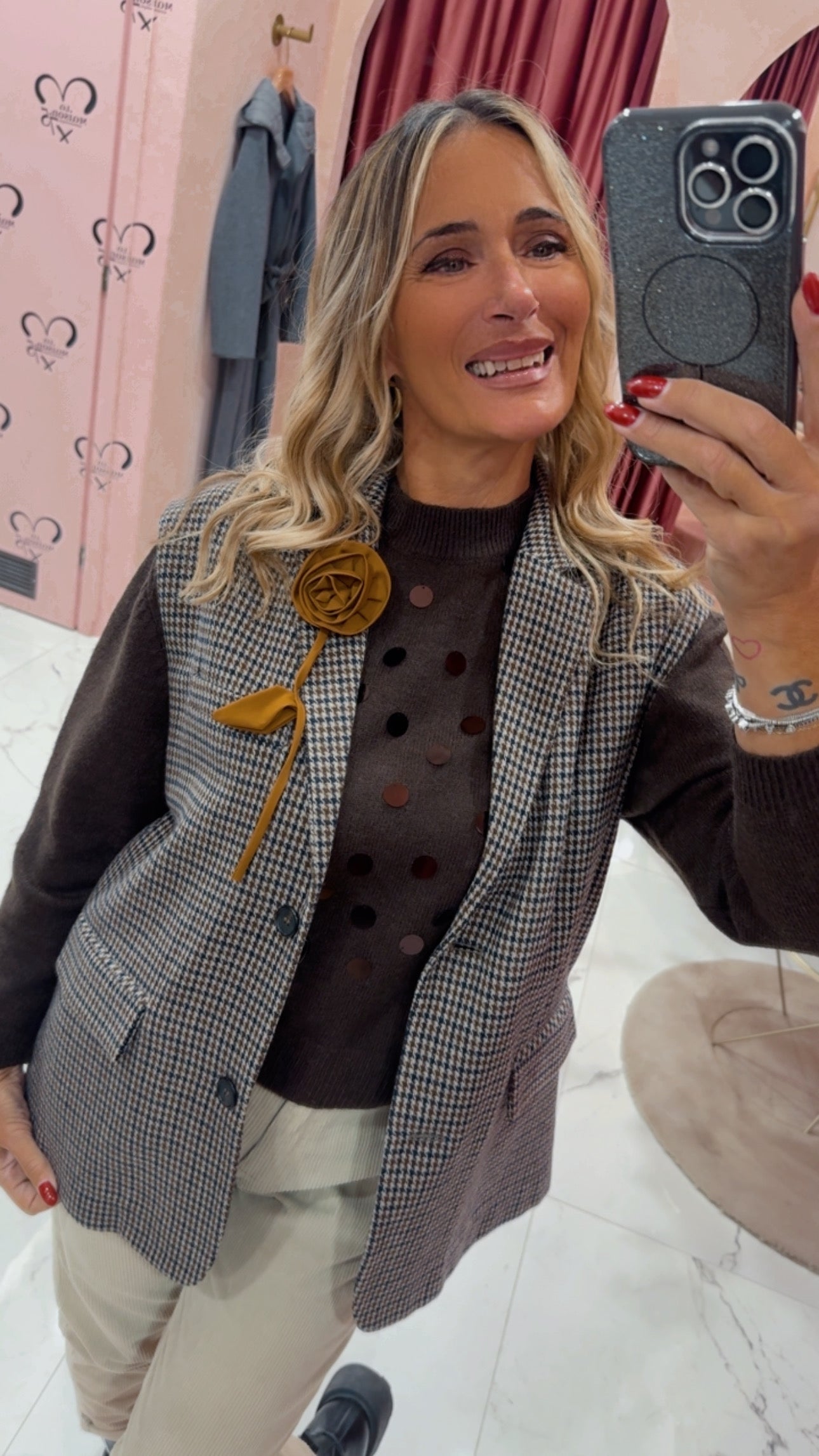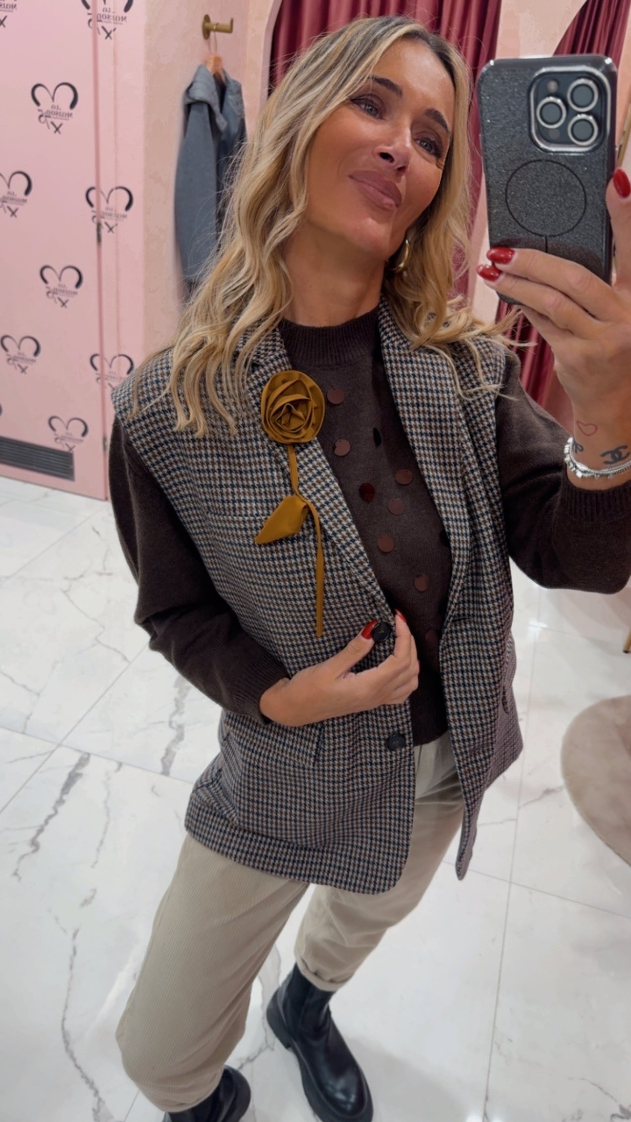 Gile check con spilla fiore