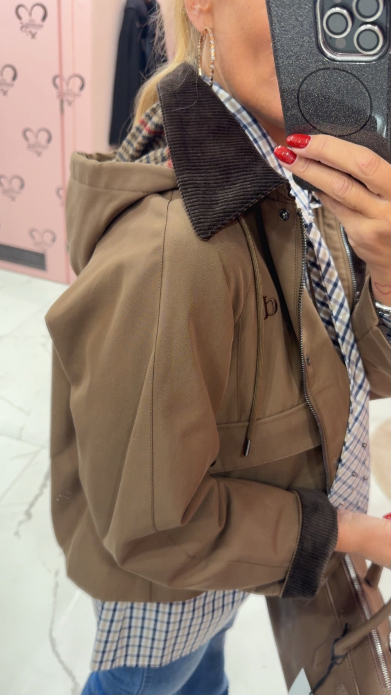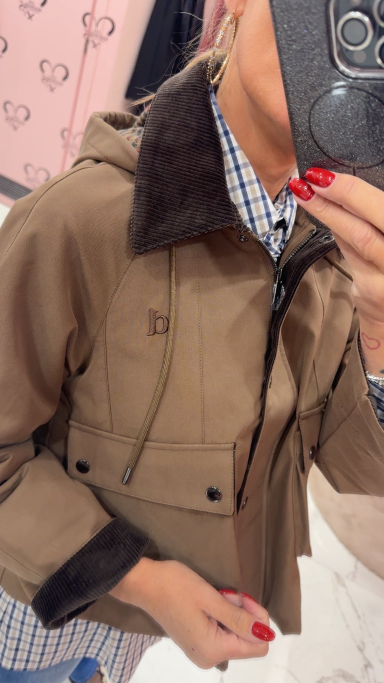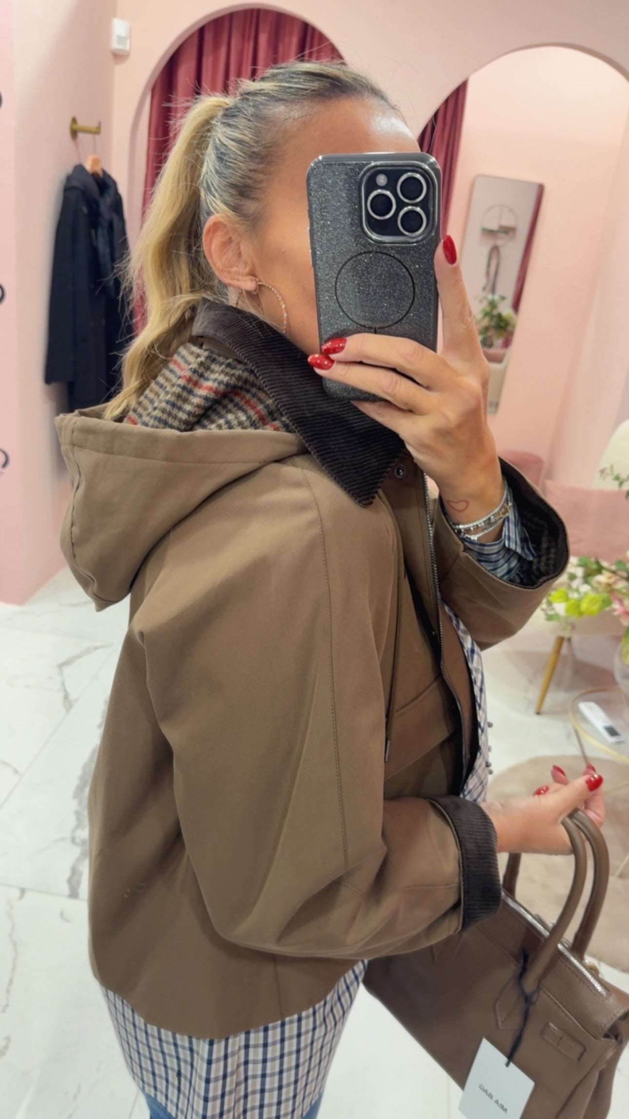 Giubbotto imbottito con cappuccio e colletto in velluto