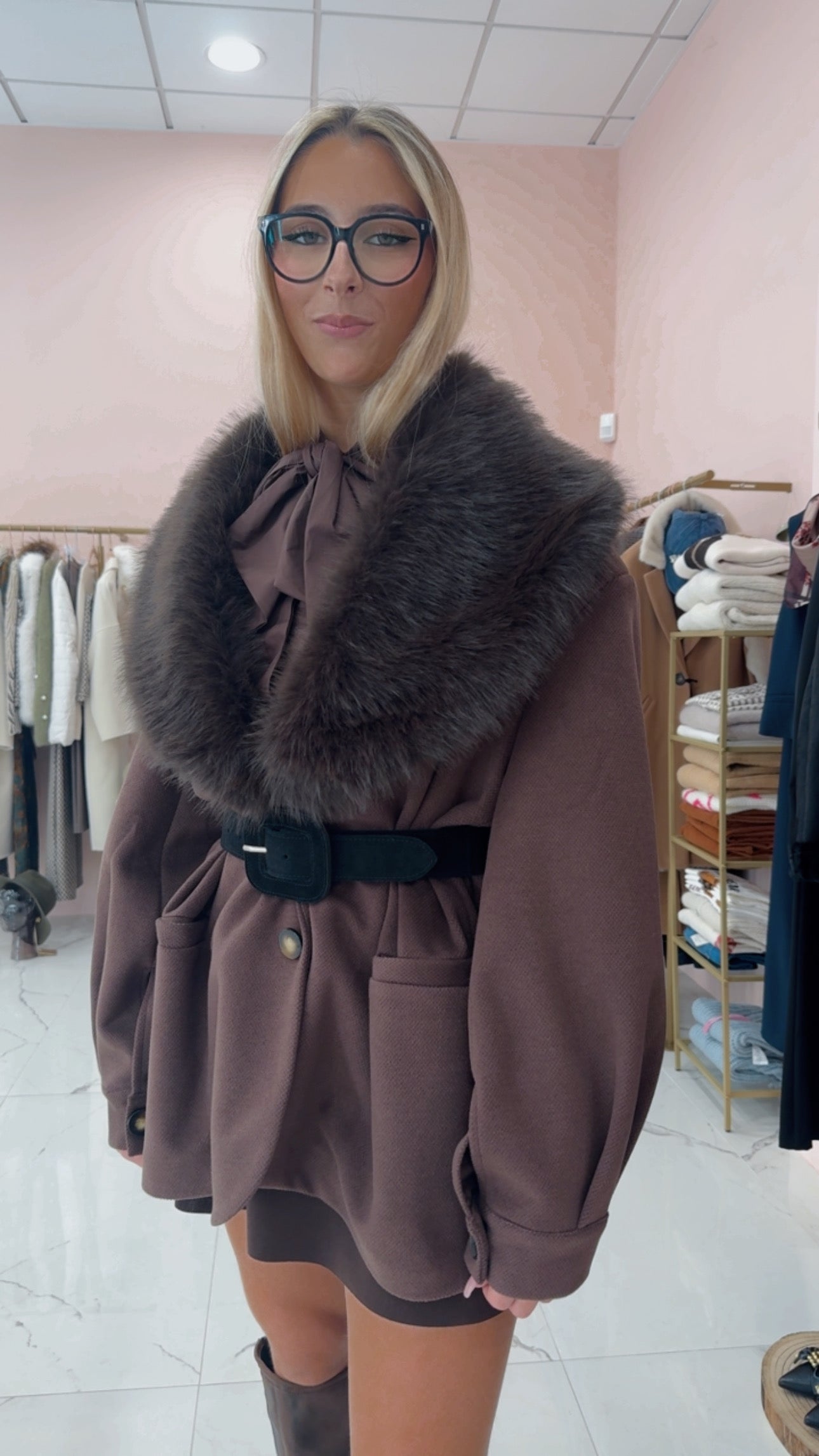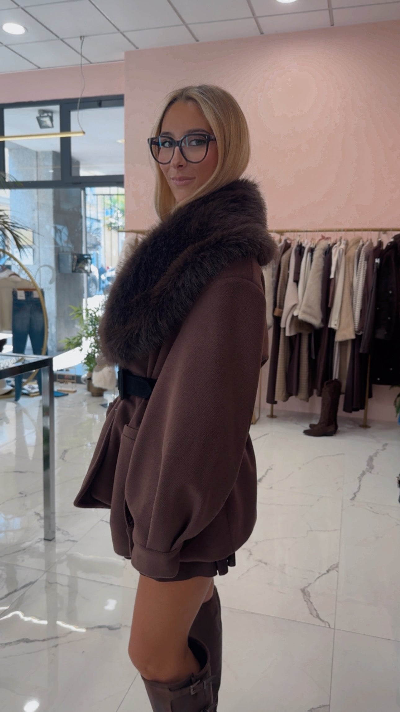 Giubbotto con pelliccia ecologica manica a sbuffo