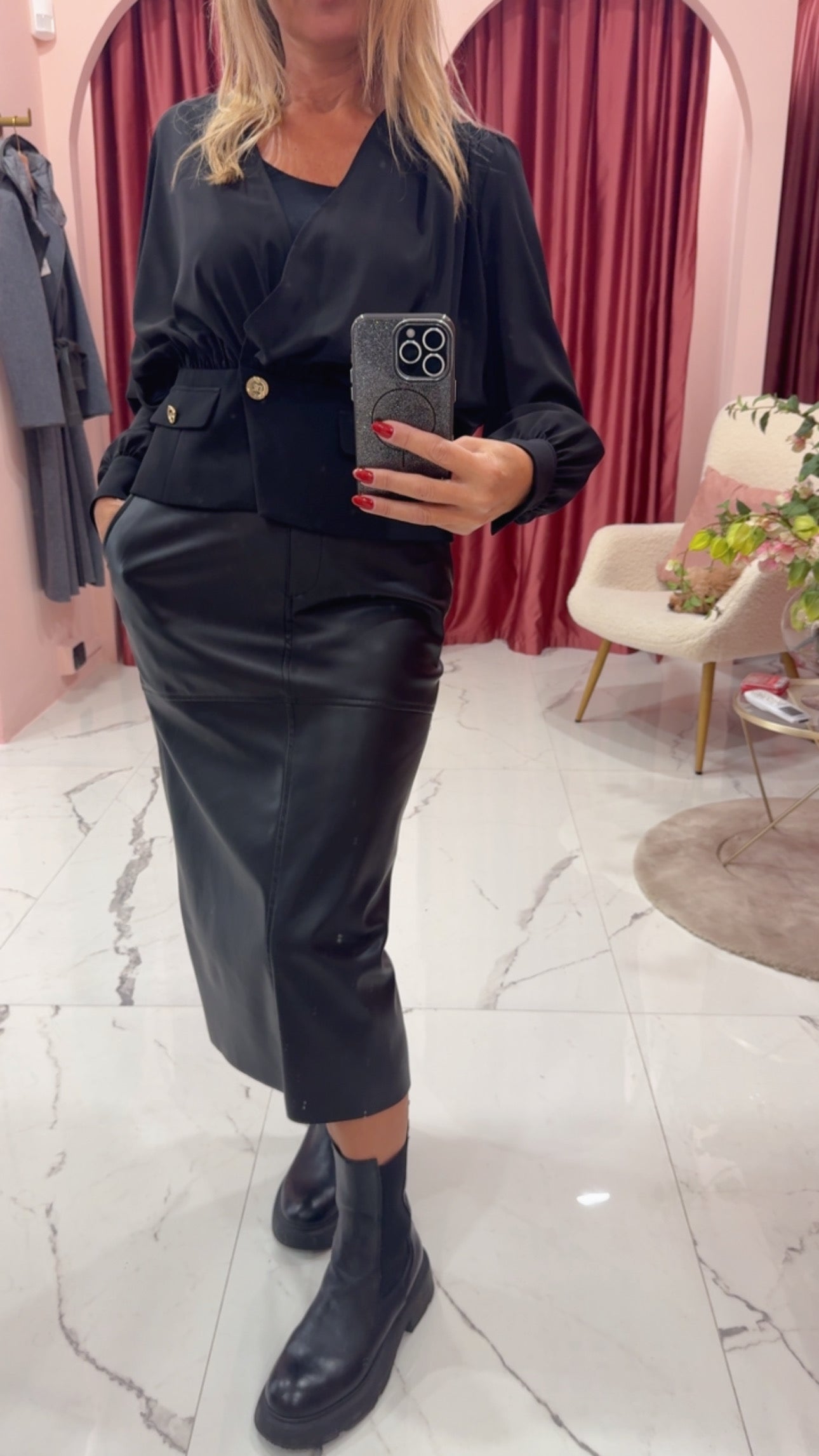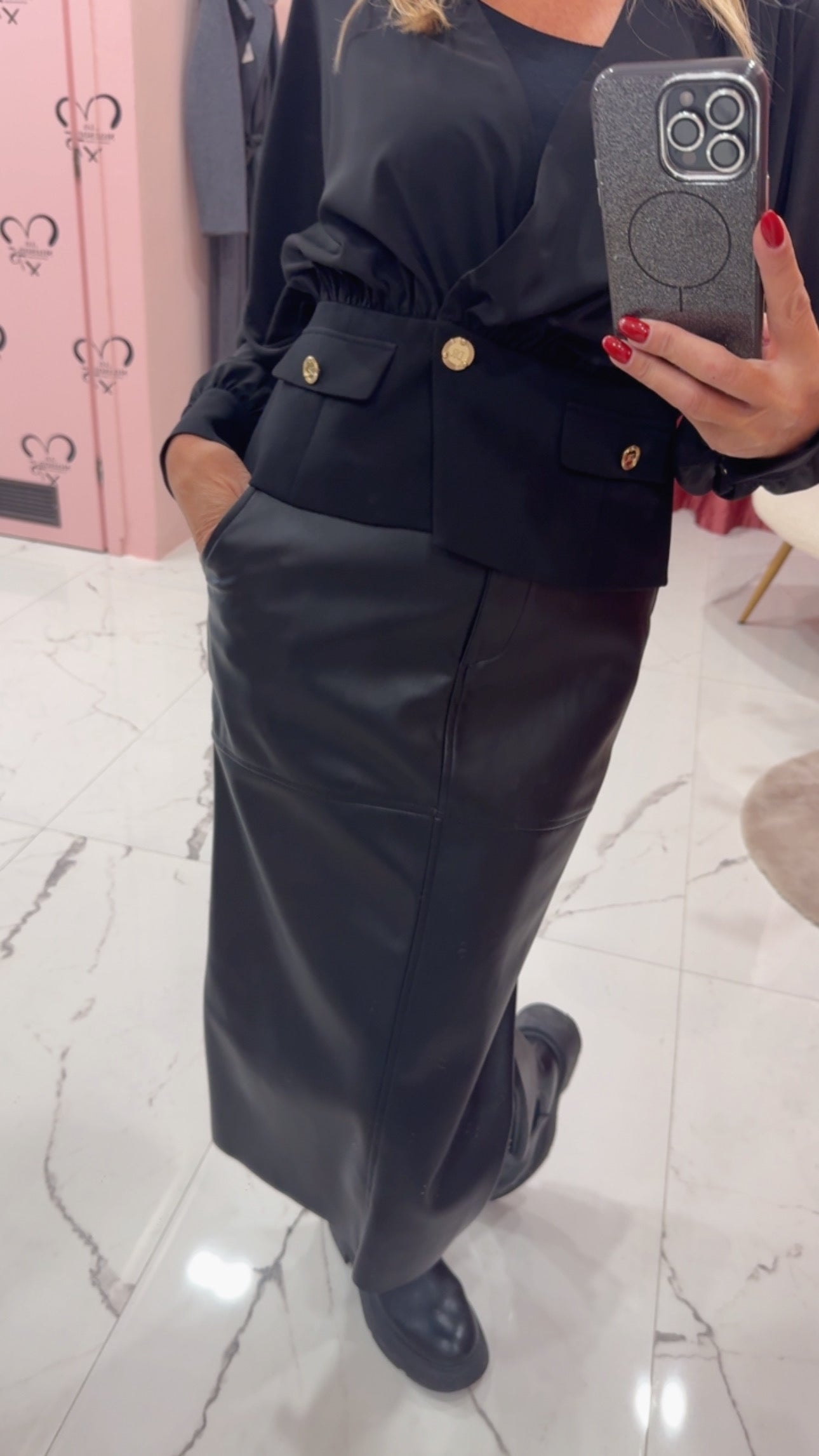 Gonna matita ecopelle con spacco