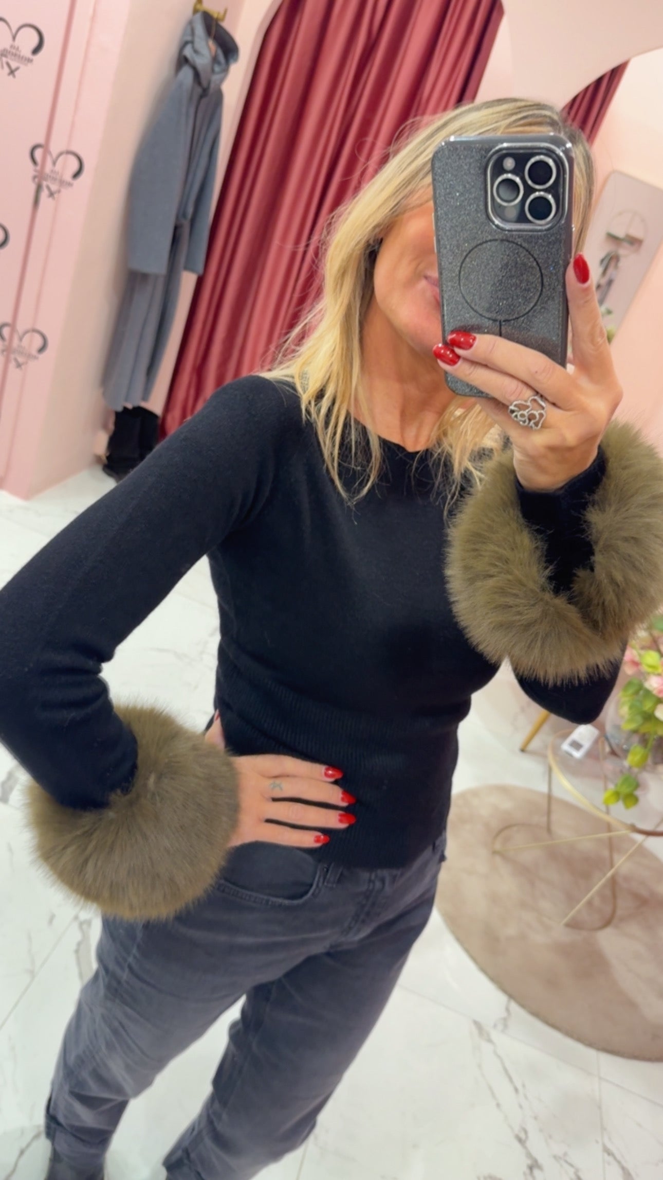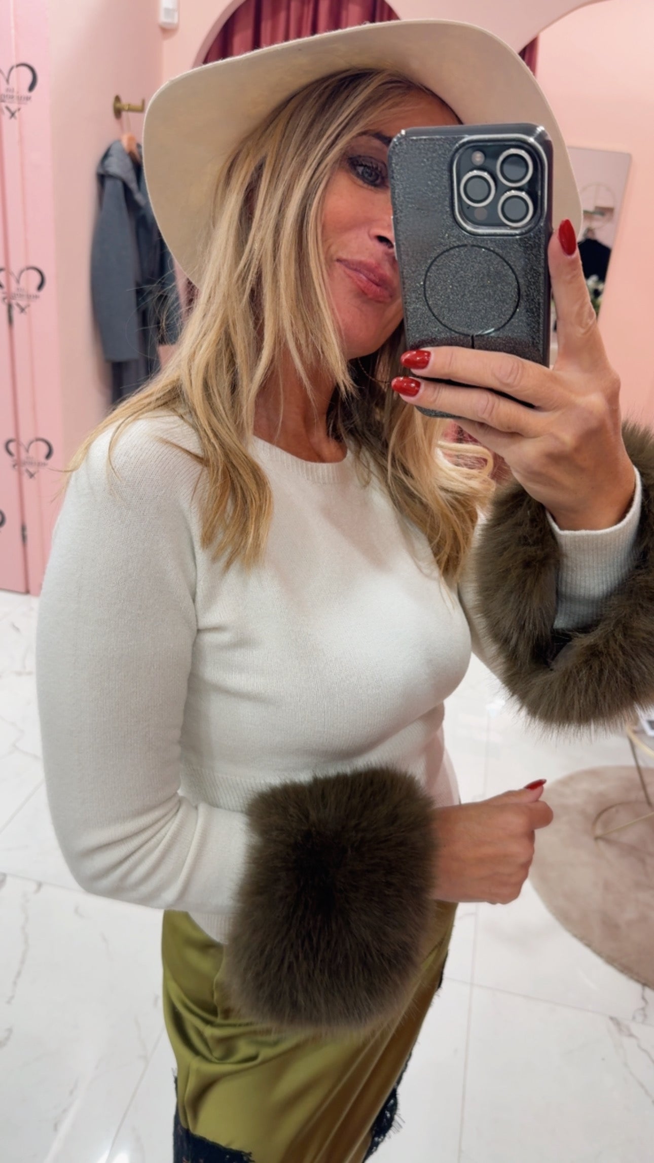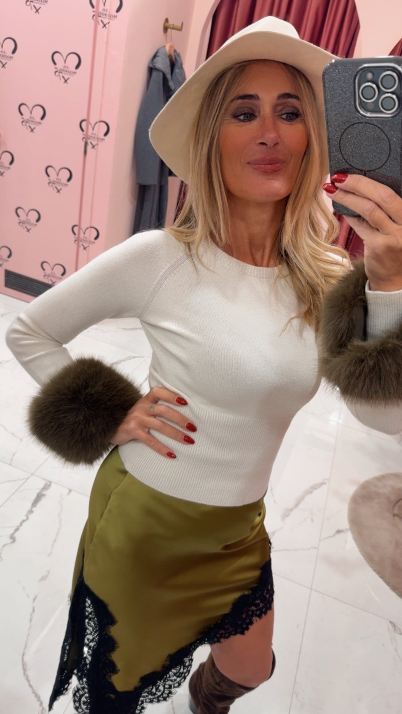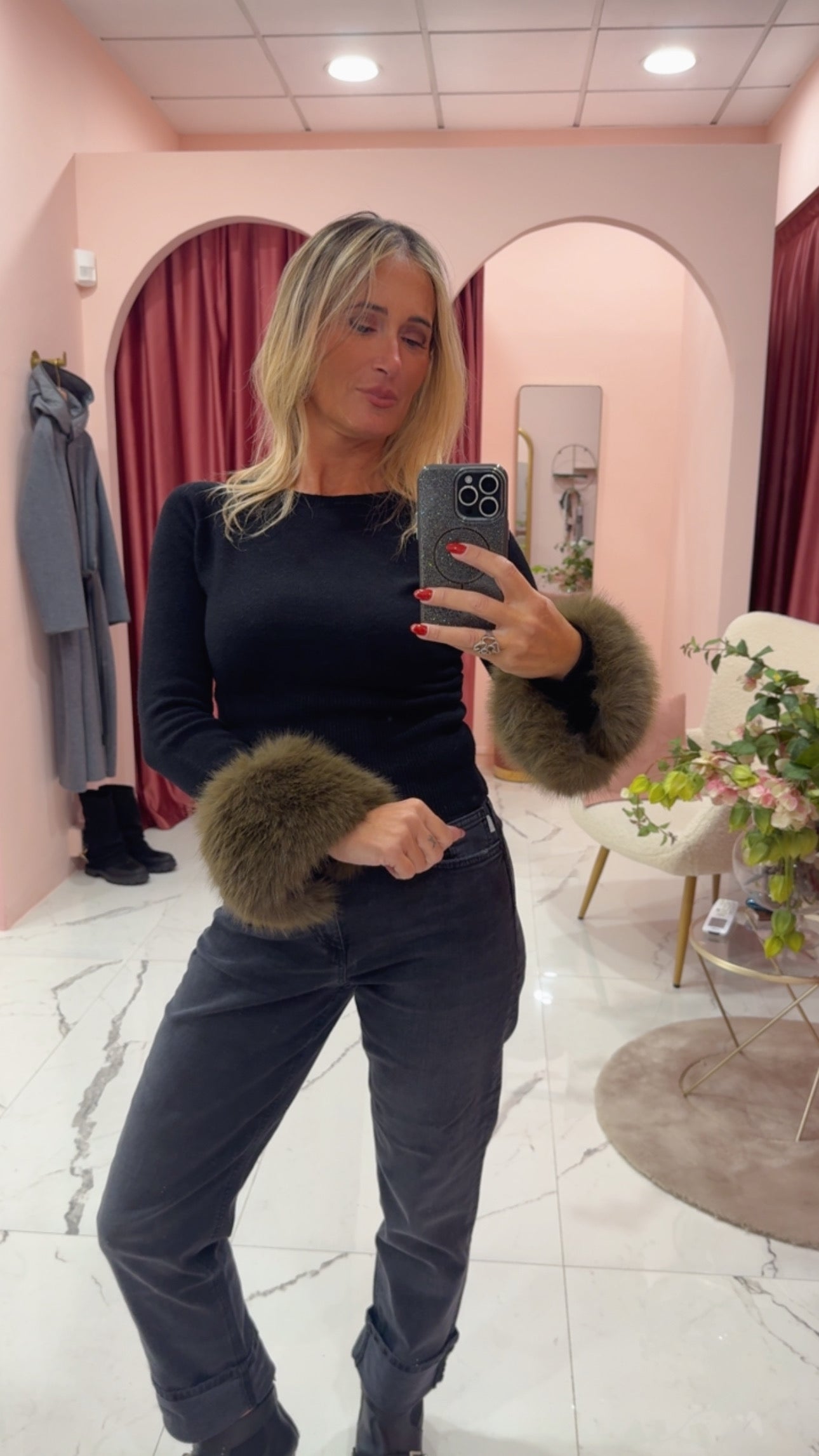 Maglia elasticizzata con polsi staccabili in ecopelliccia