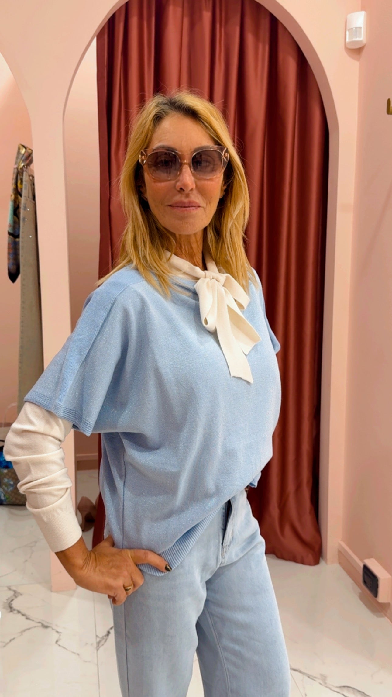 Maglia scollata con manica camicia e dettaglio incrocio