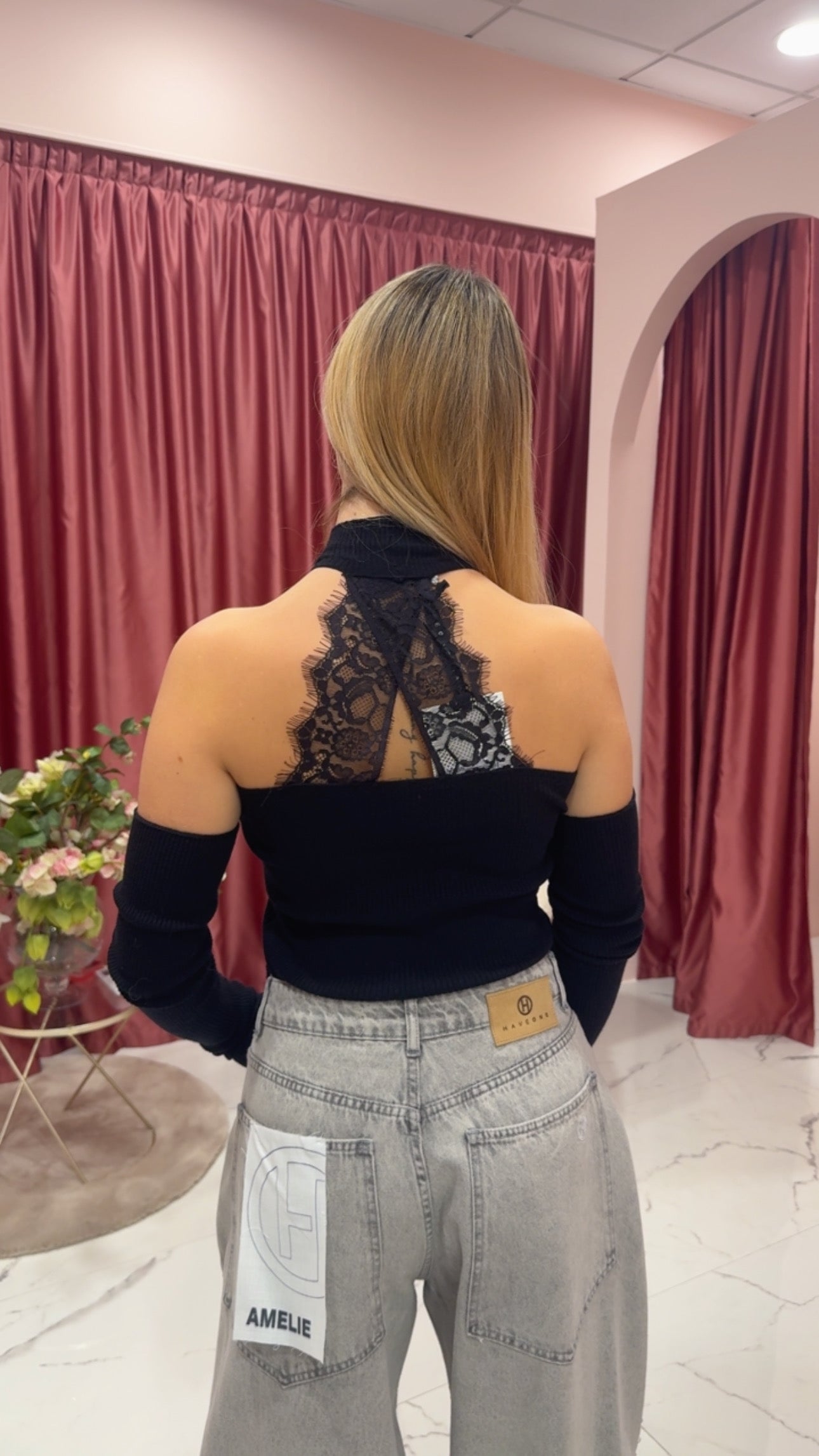 Top crop pizzo dietro e manicotti