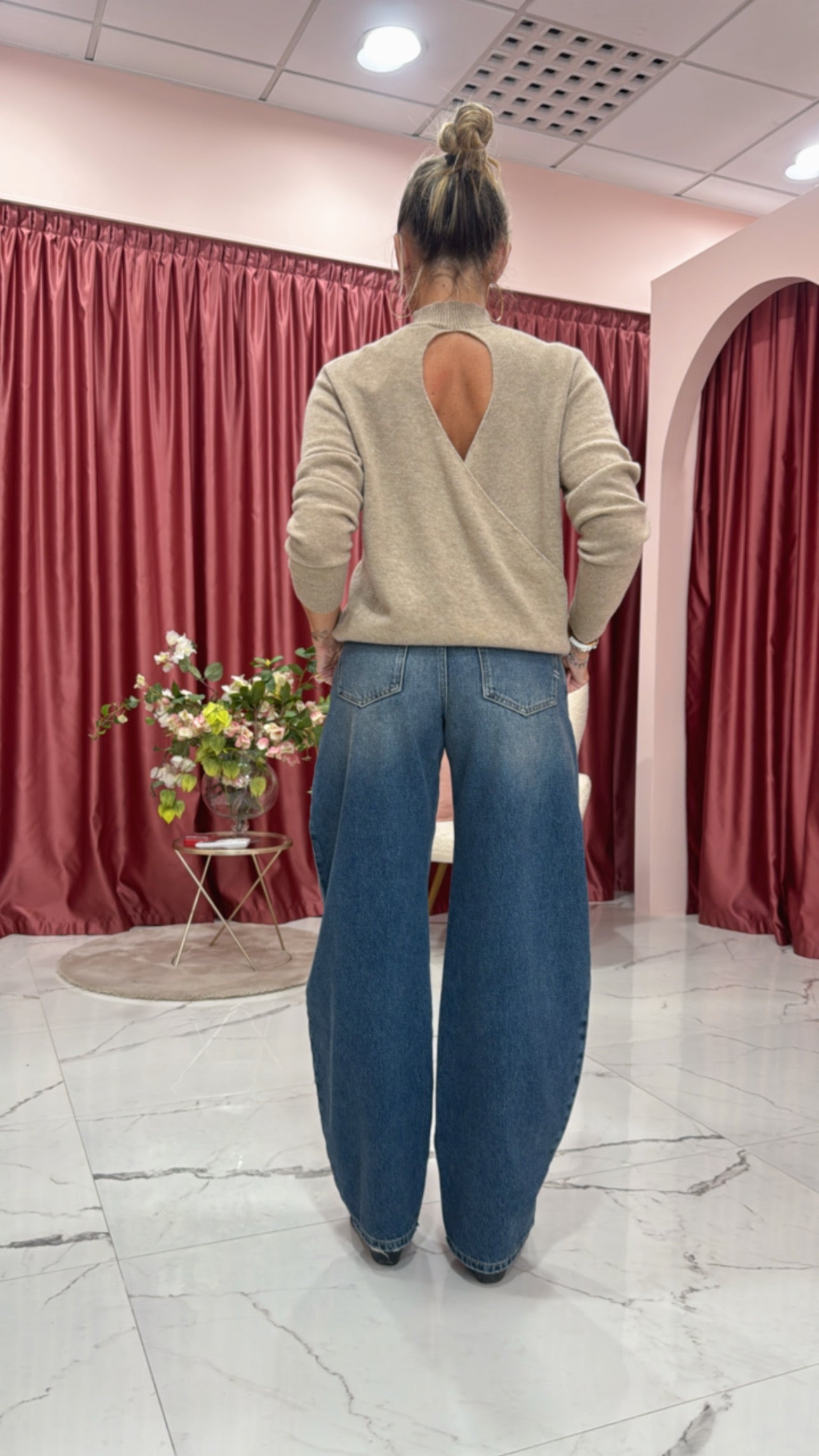 Maglia lupetto con oblò a incrocio dietro lana cachemire