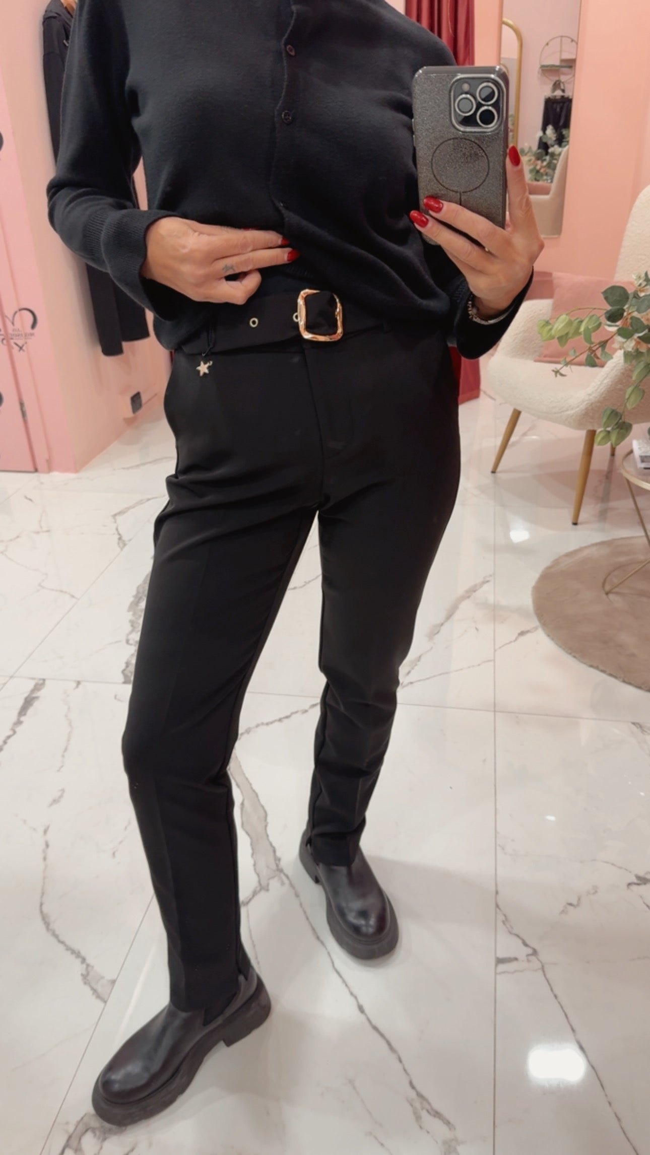 Pantalone sigaretta vita regolare con cintura fibbia oro