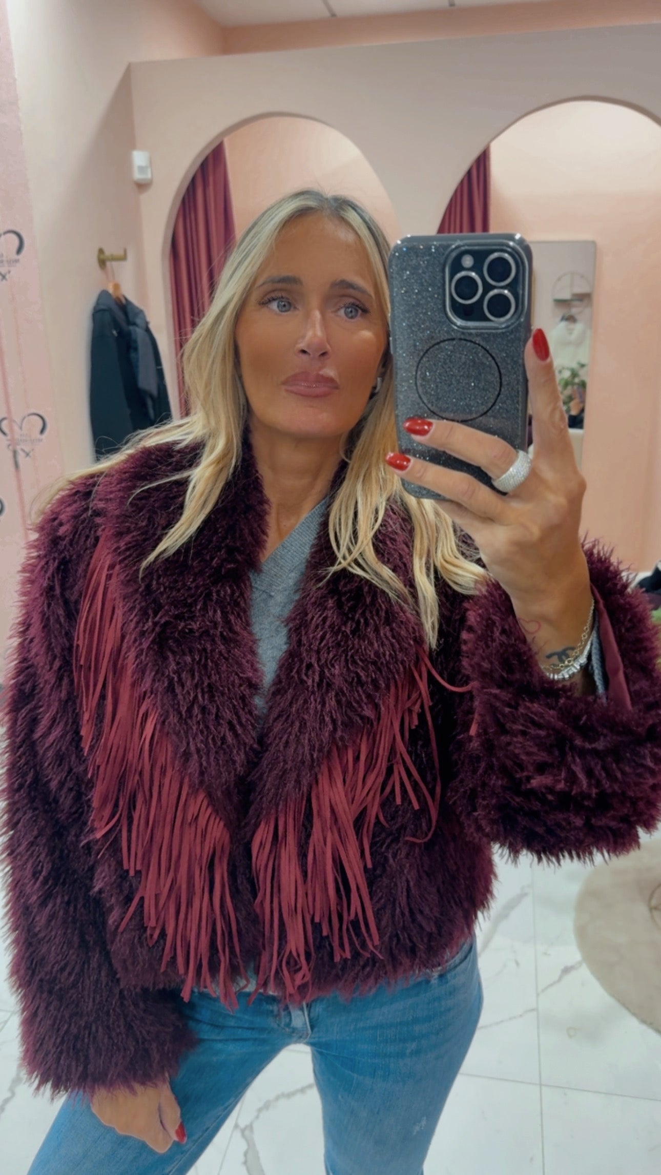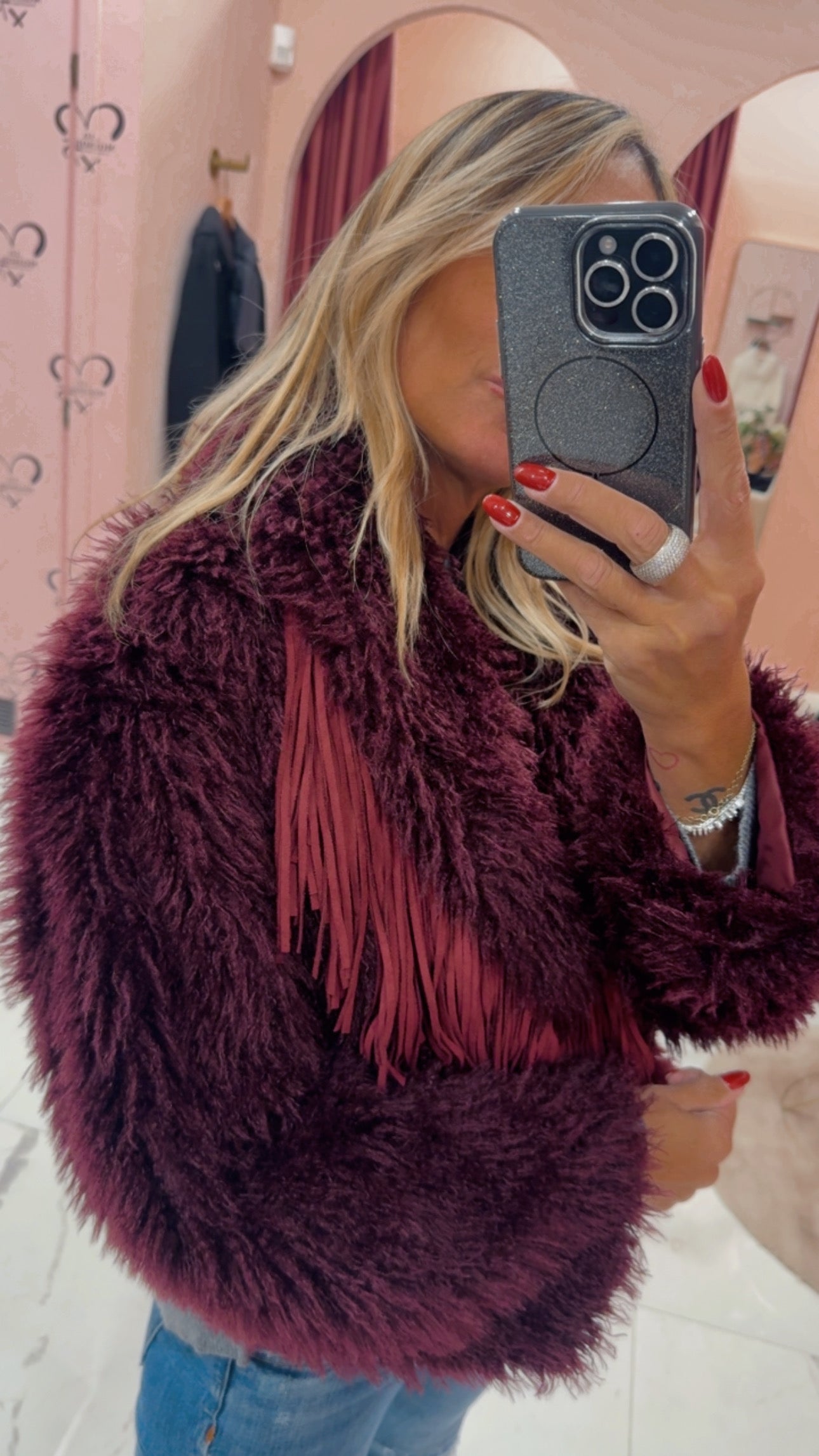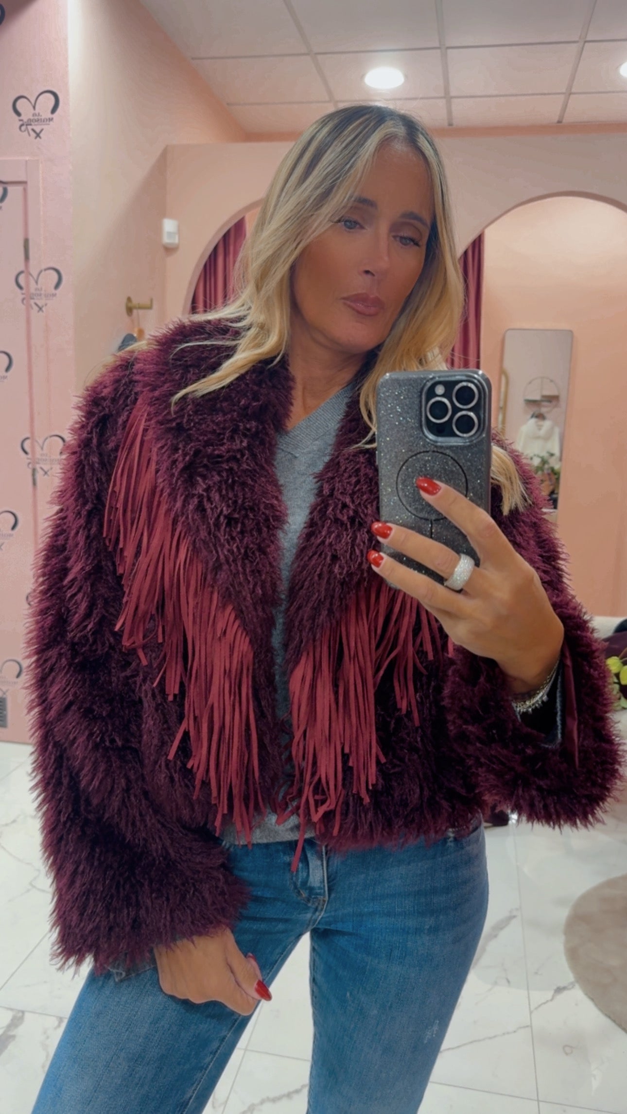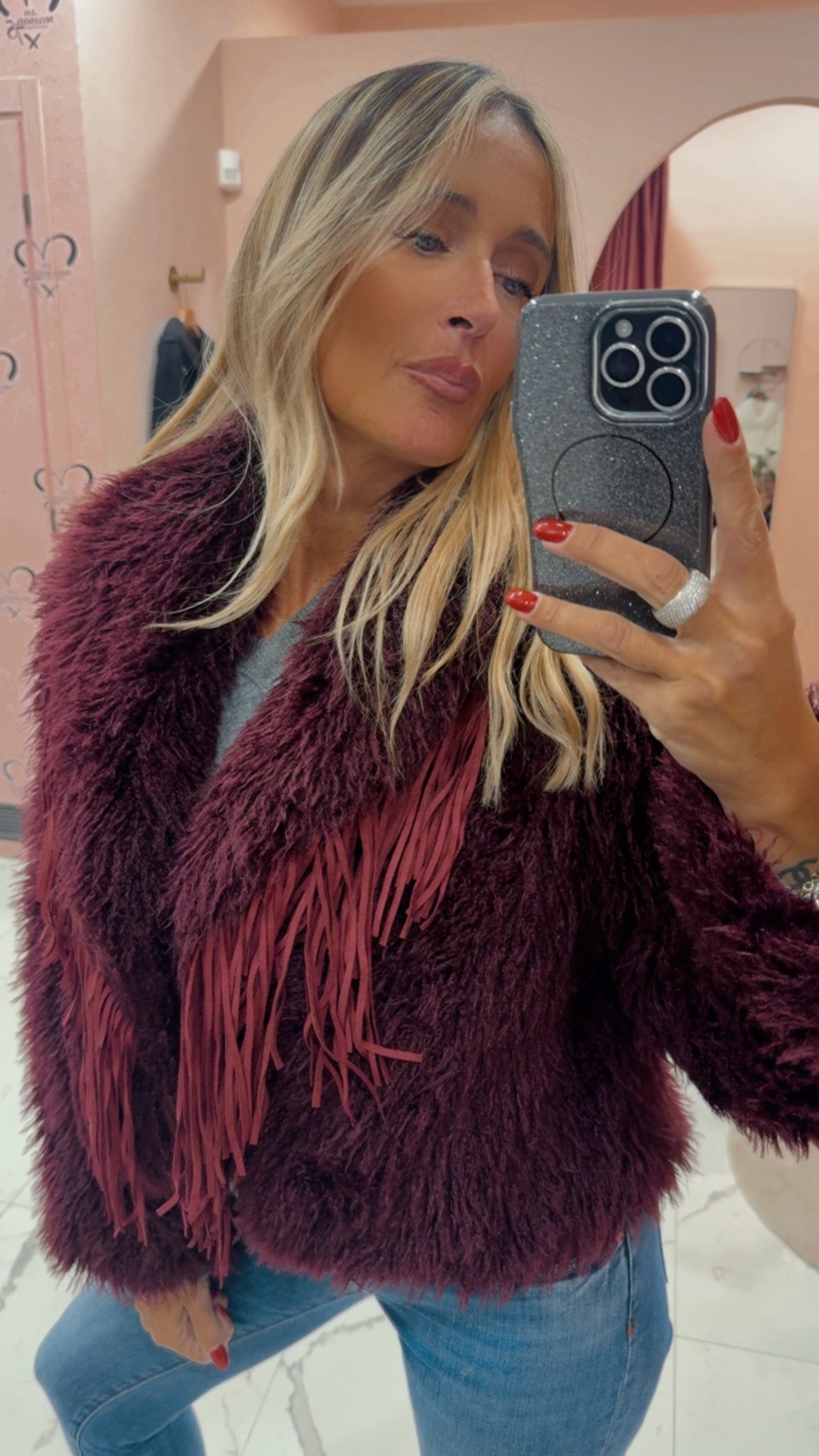 Pelliccetta con frange in pelle