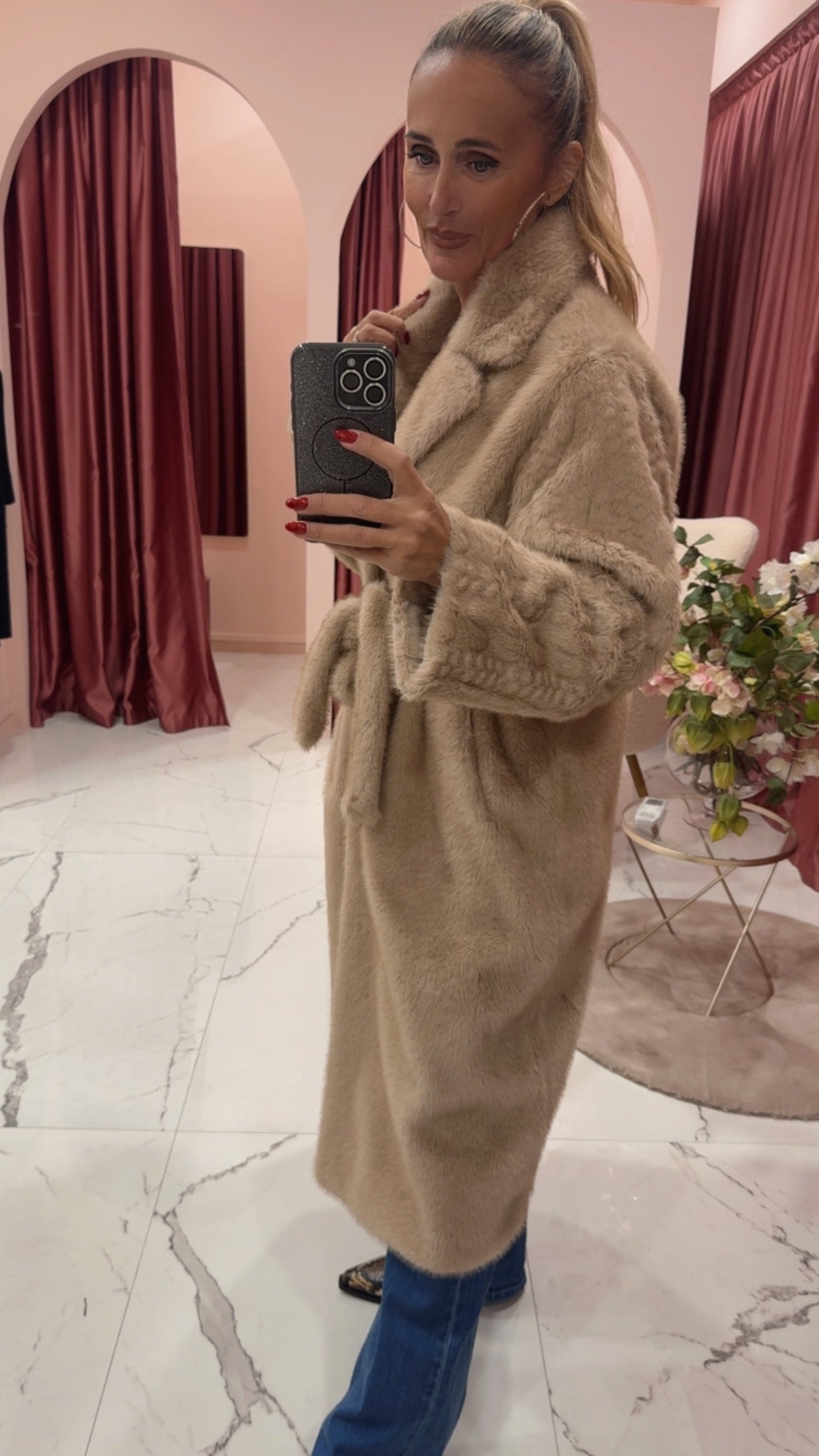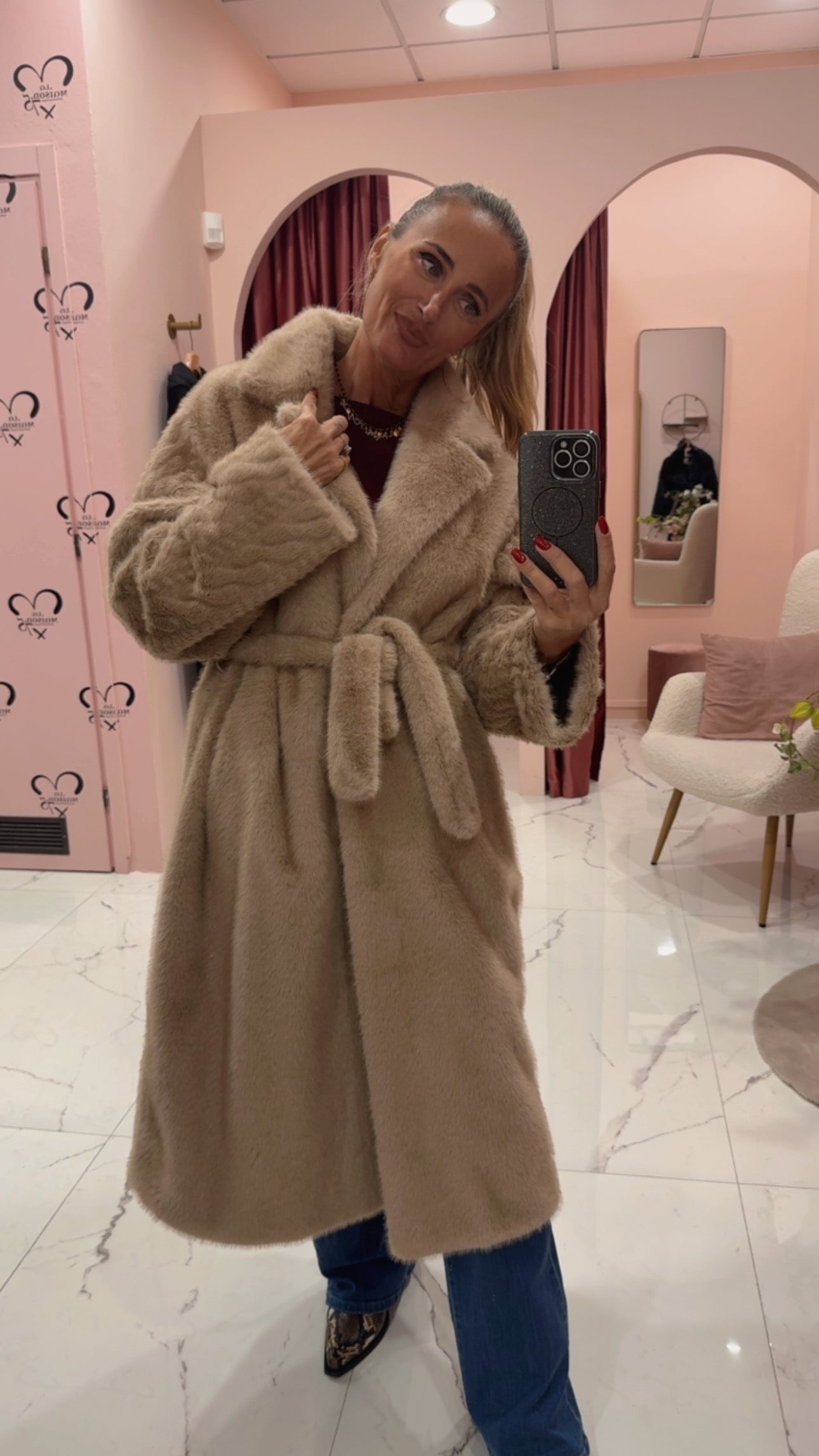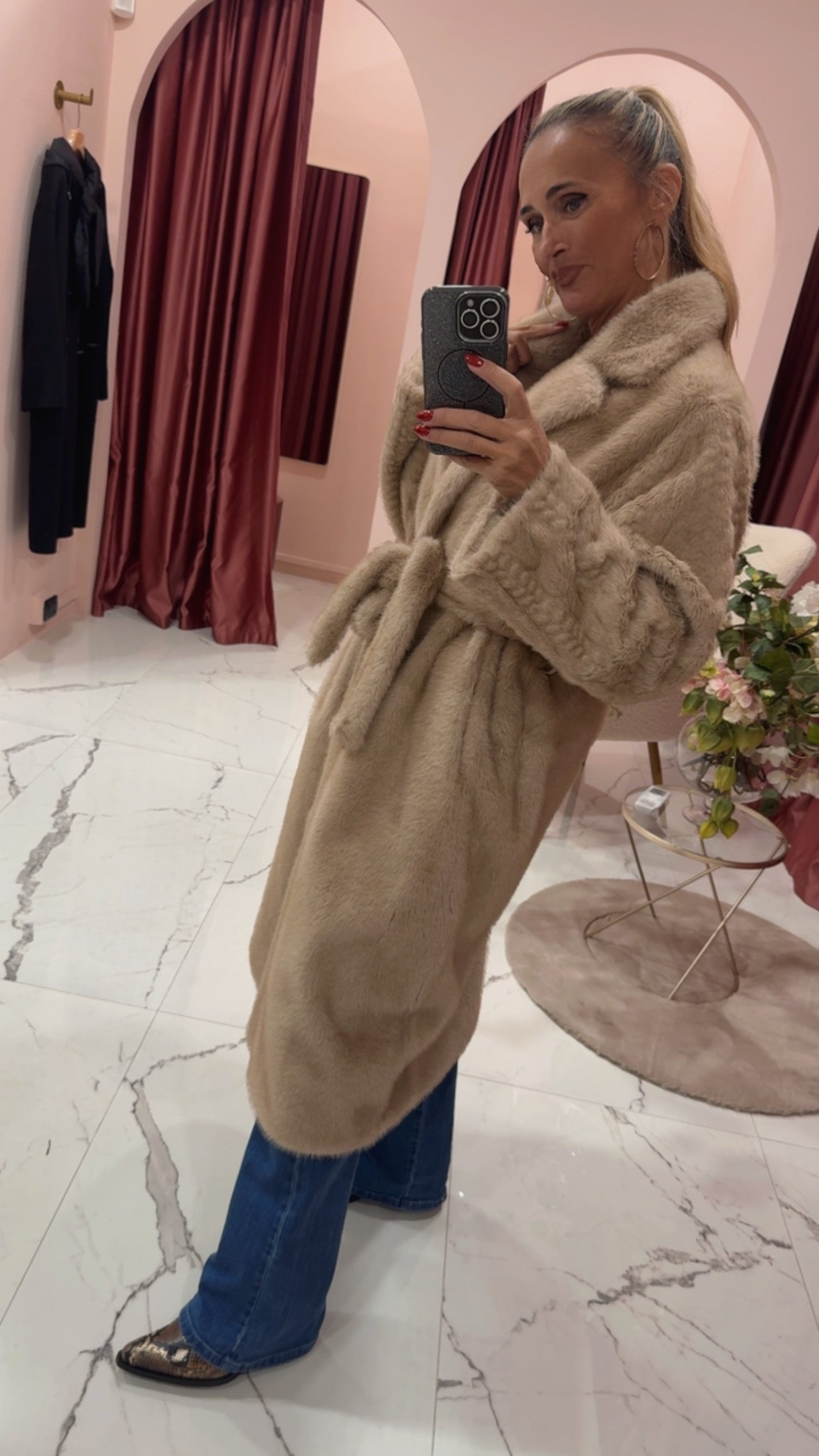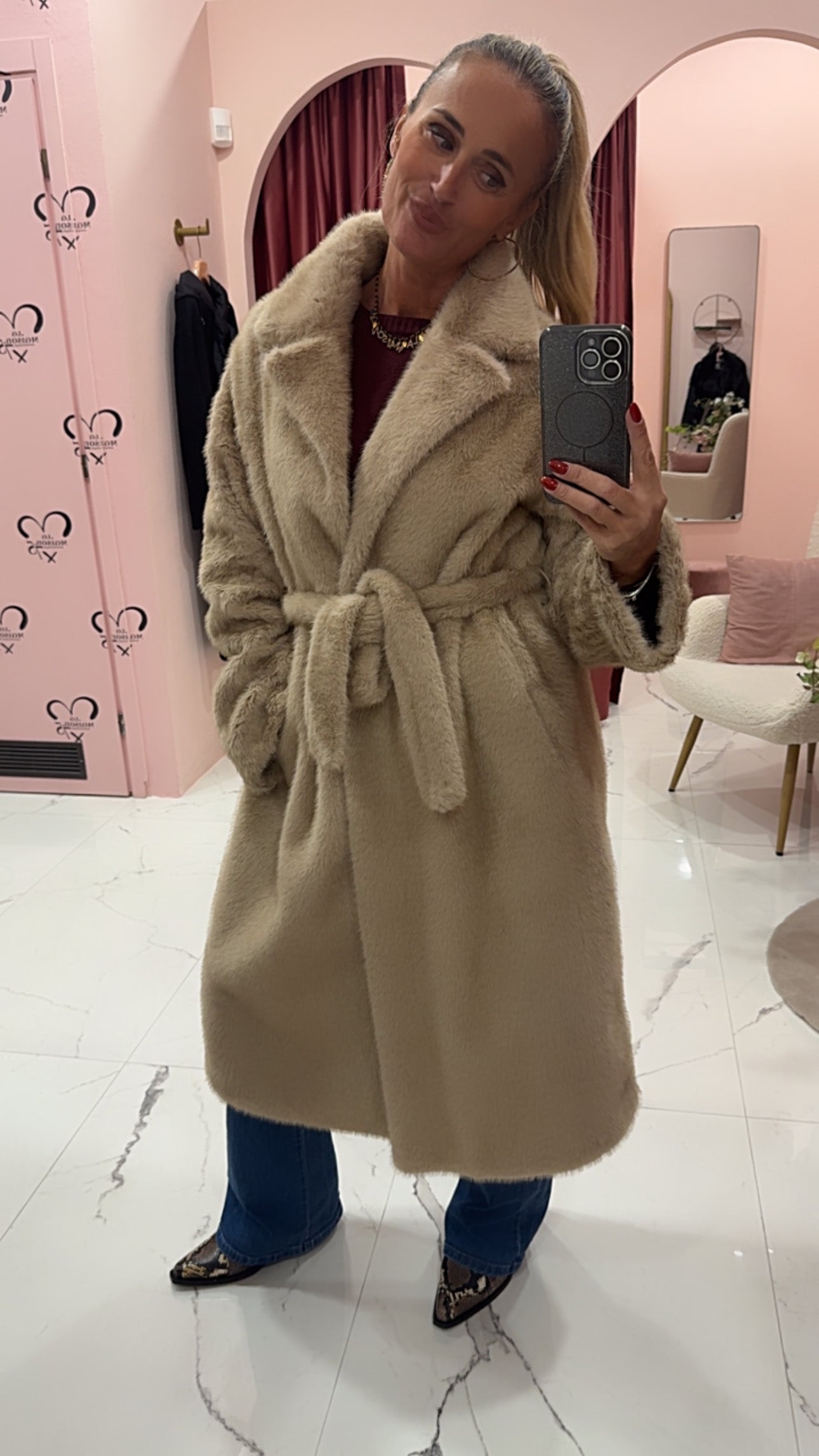 Pelliccia eco con lavorazione sulle maniche cinturata