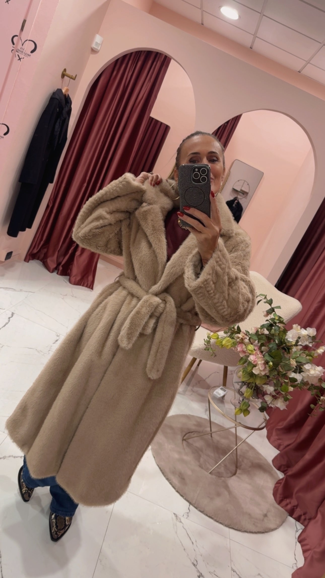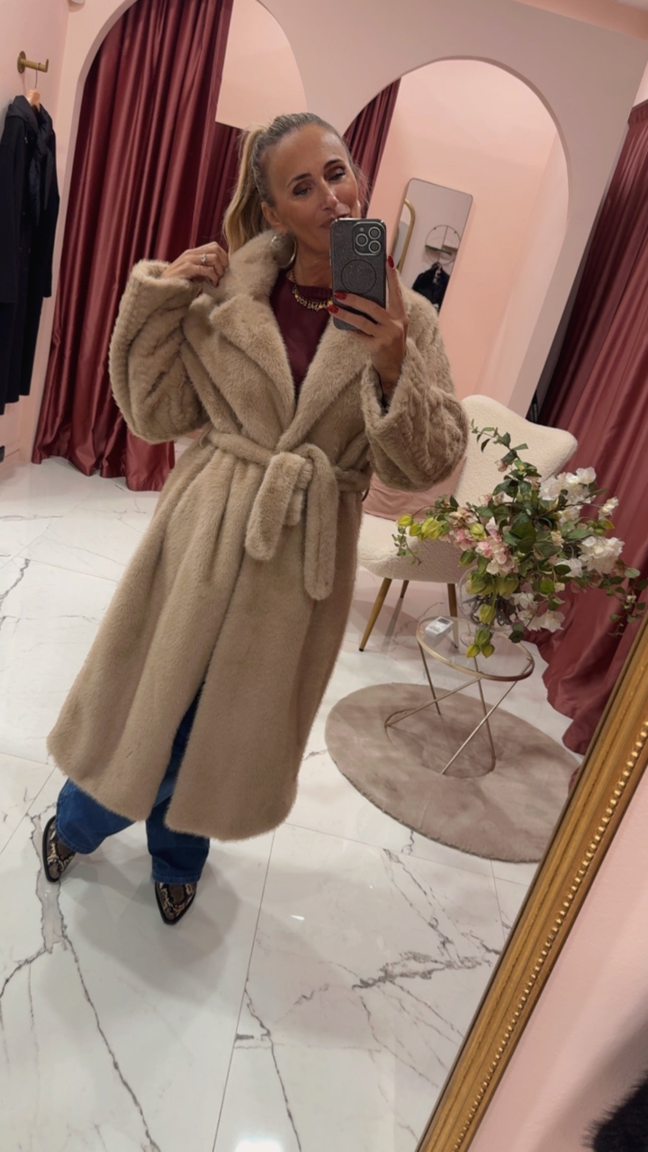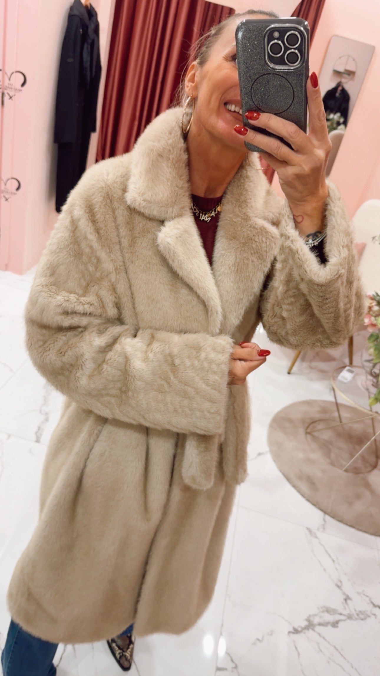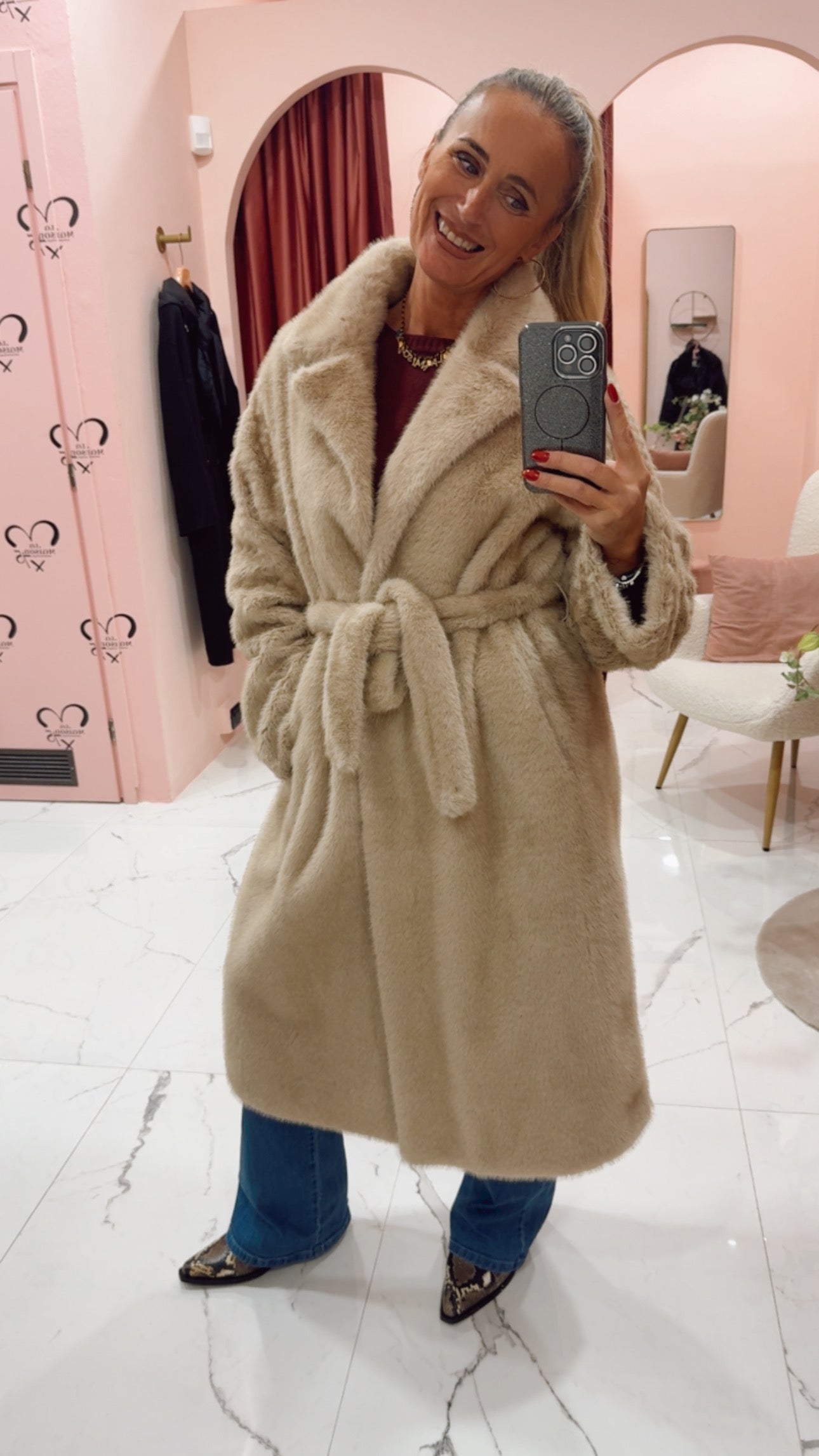 Pelliccia eco con lavorazione sulle maniche cinturata