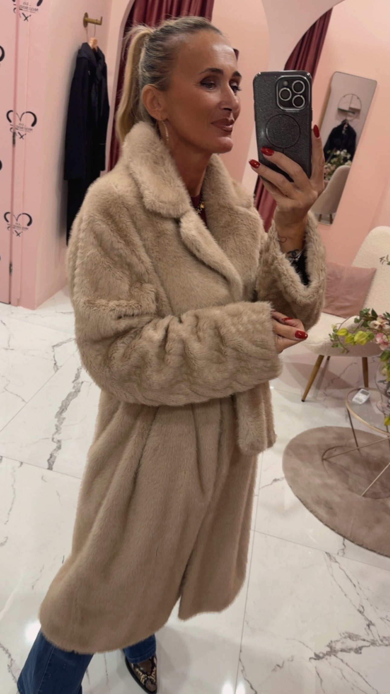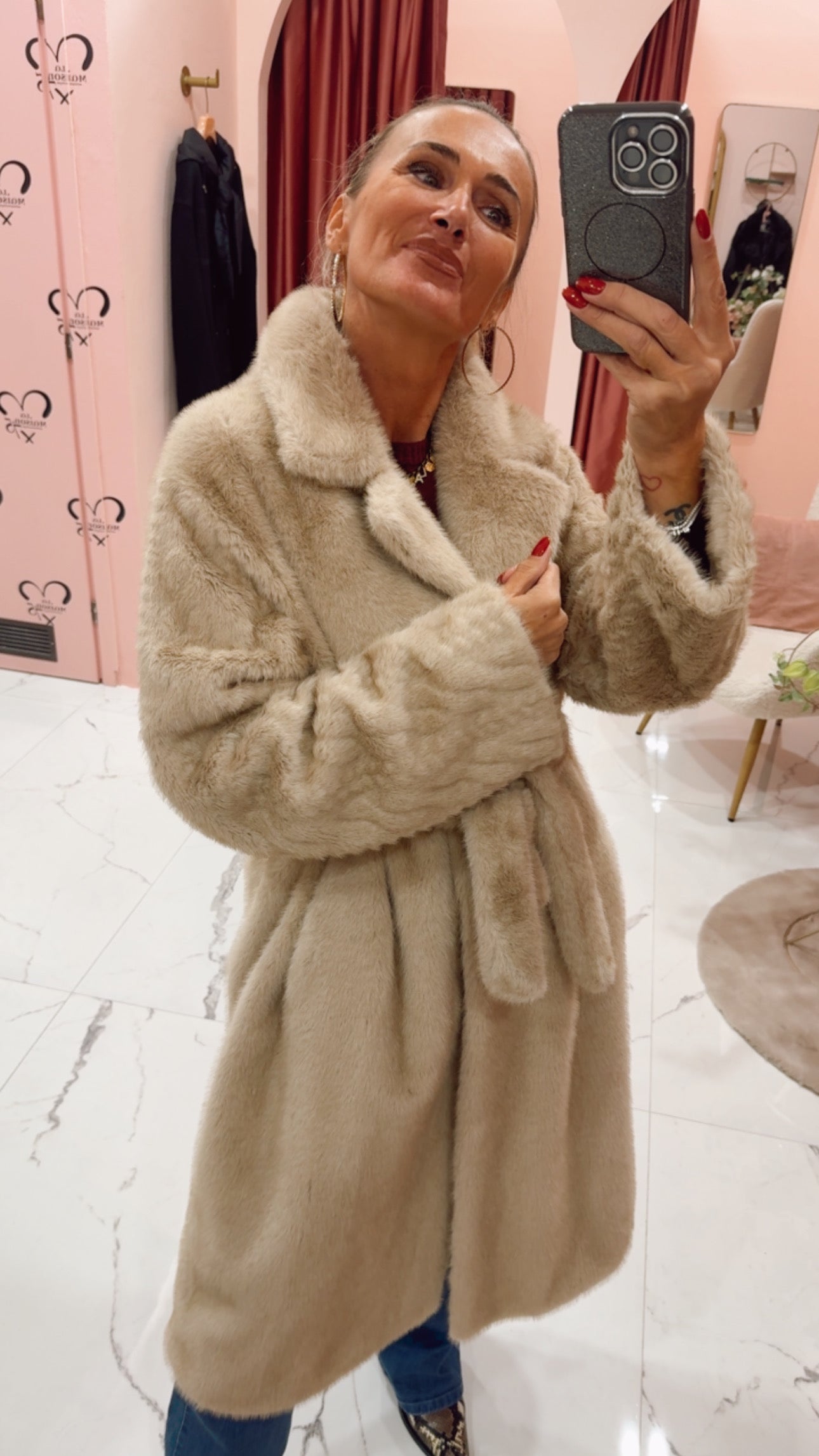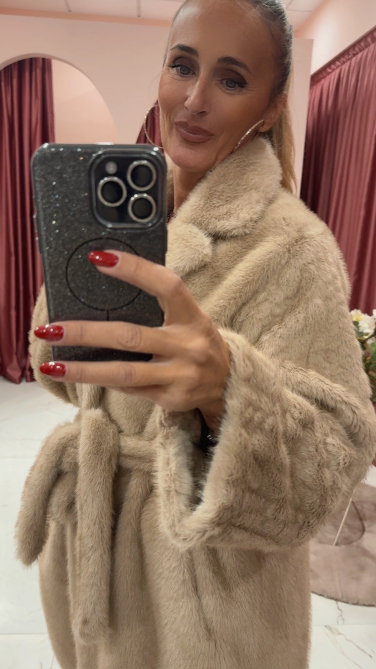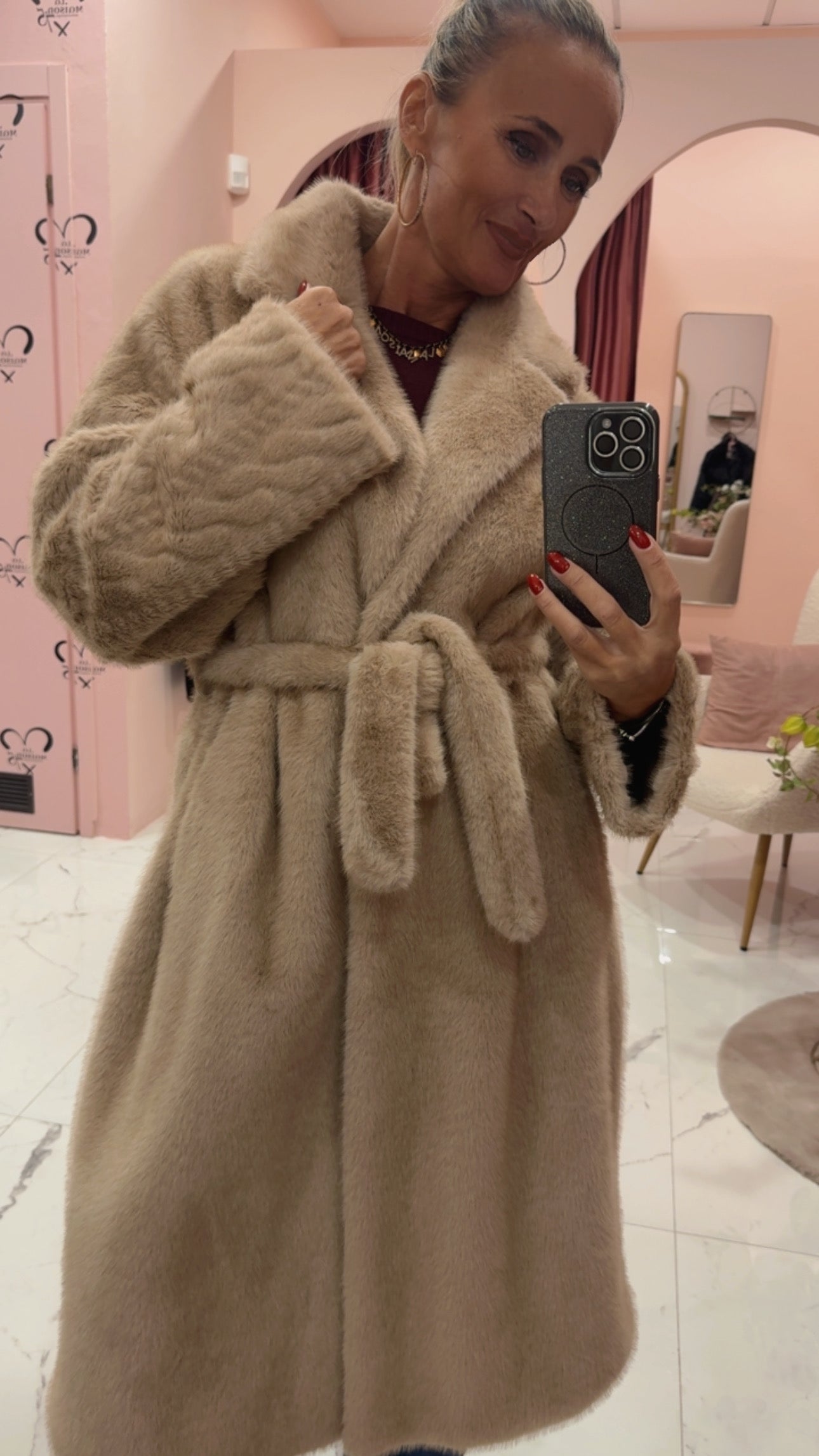 Pelliccia eco con lavorazione sulle maniche cinturata