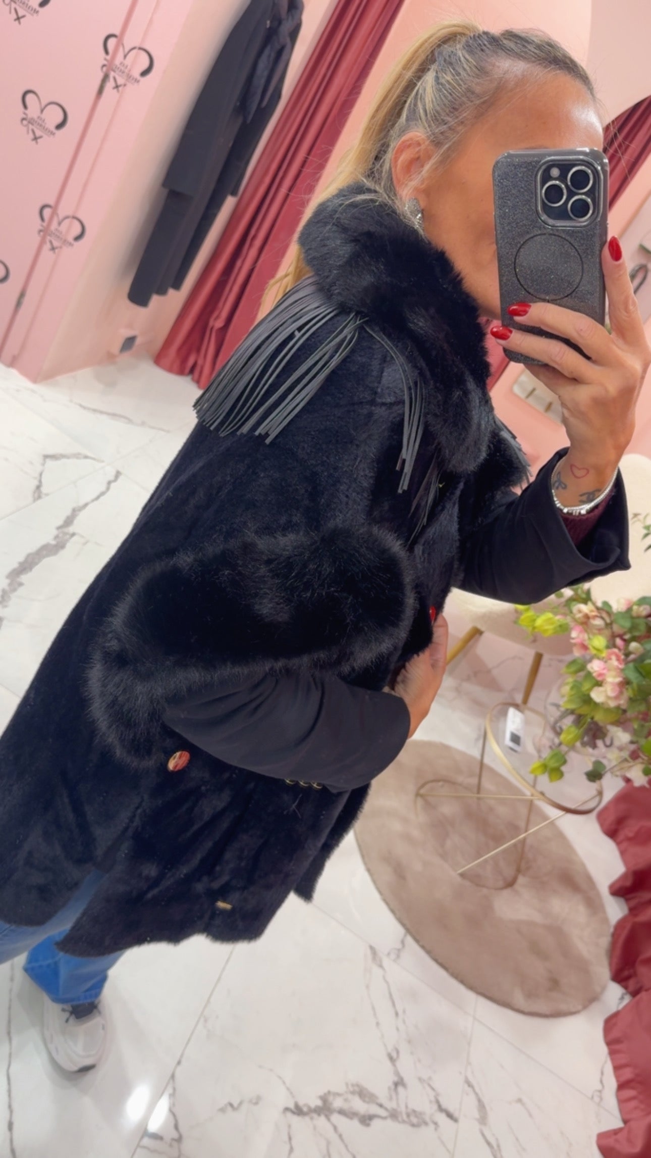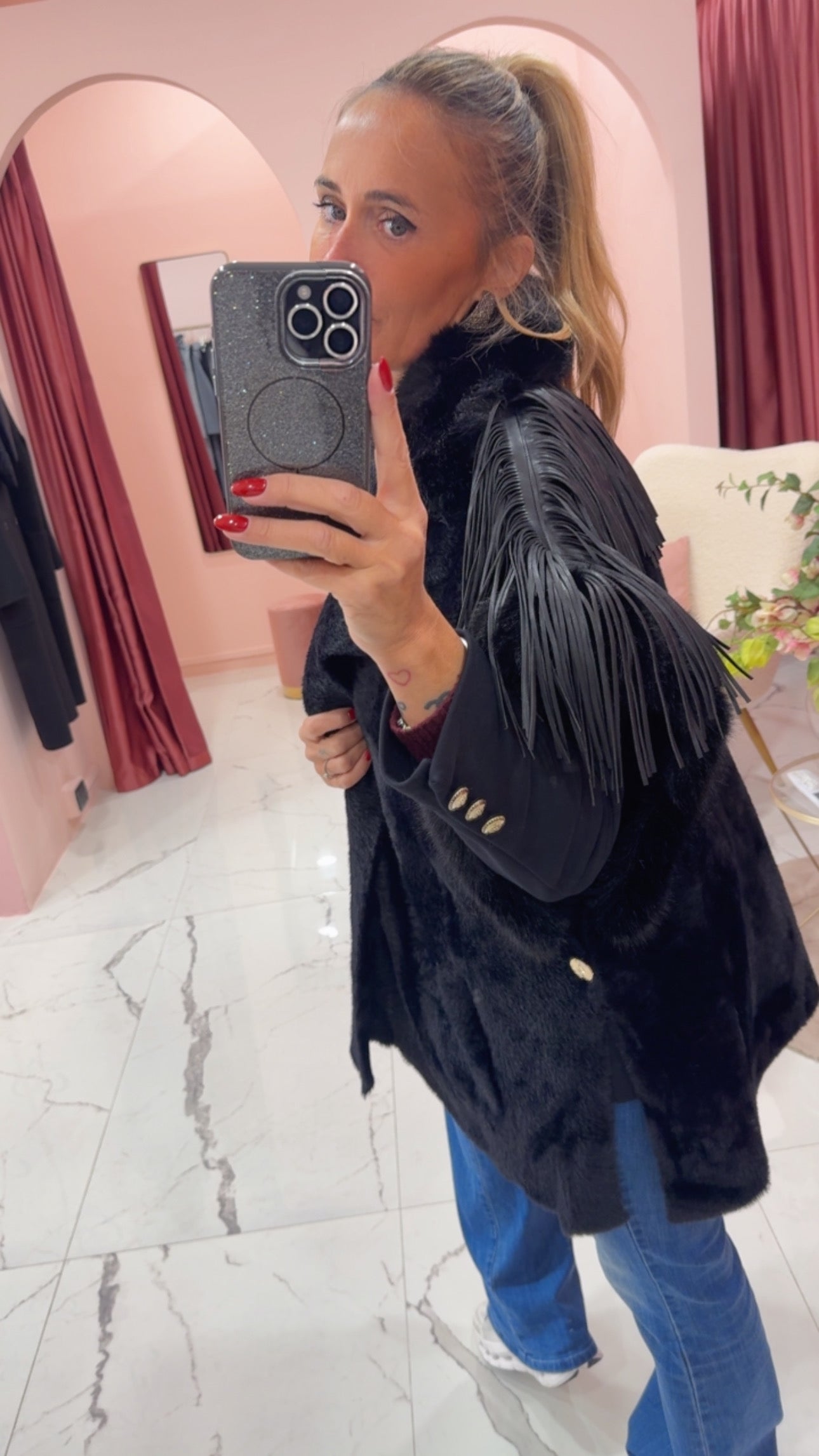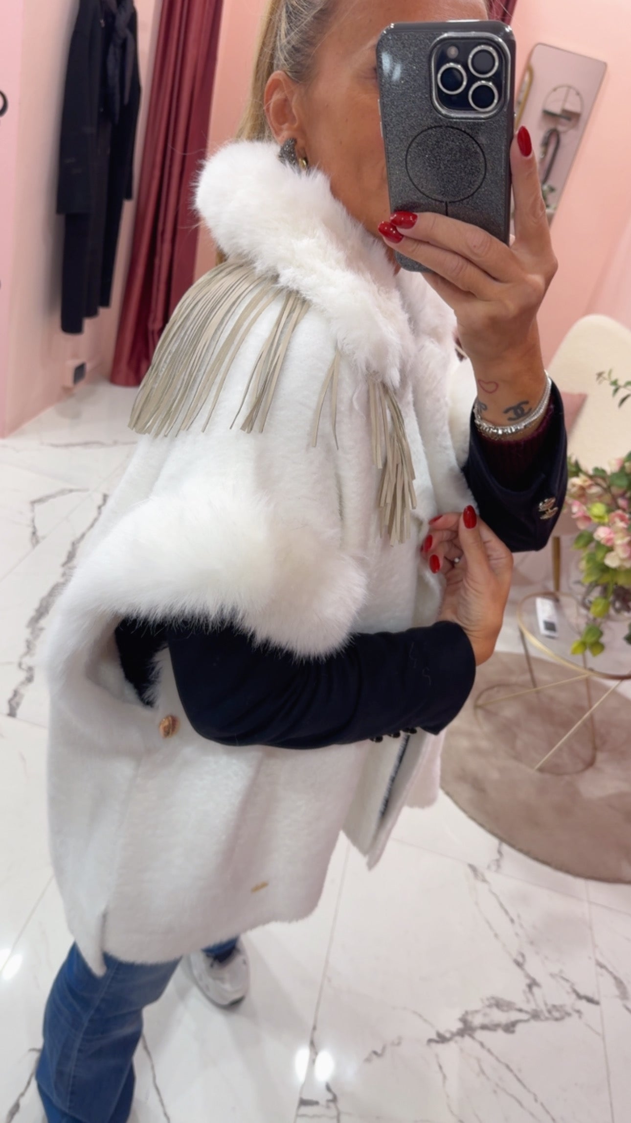 Smanicato con pelliccia eco e frange