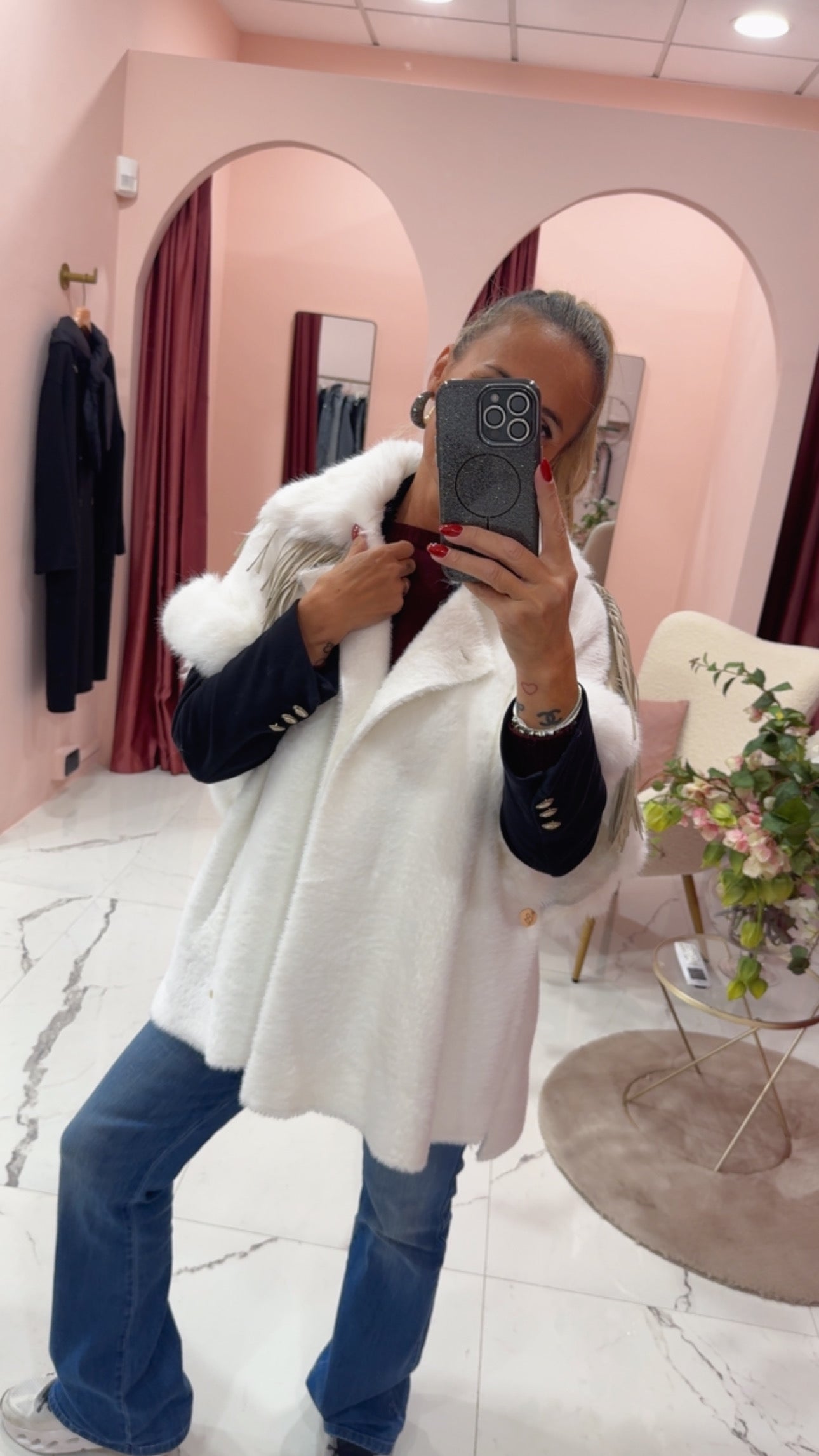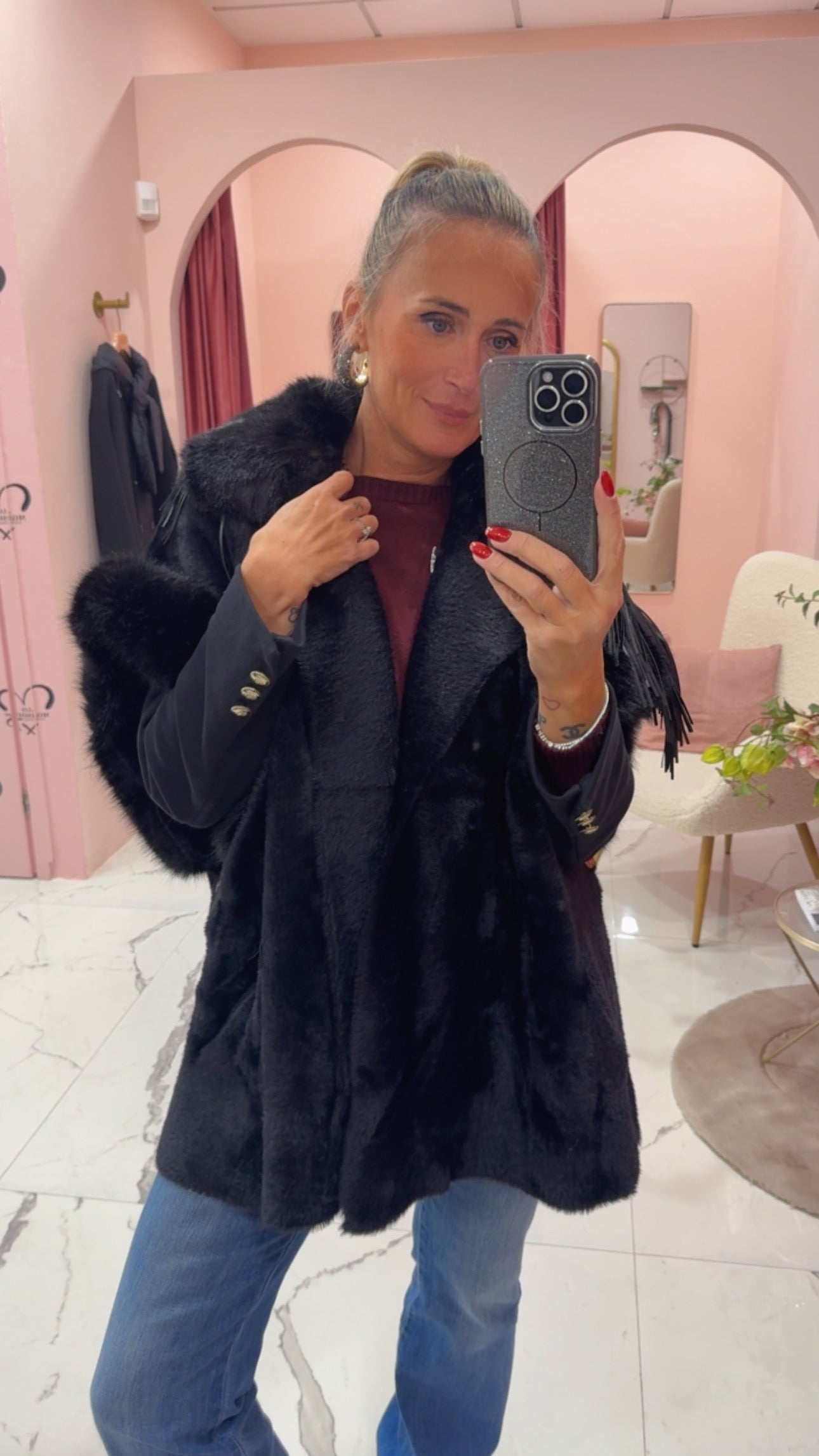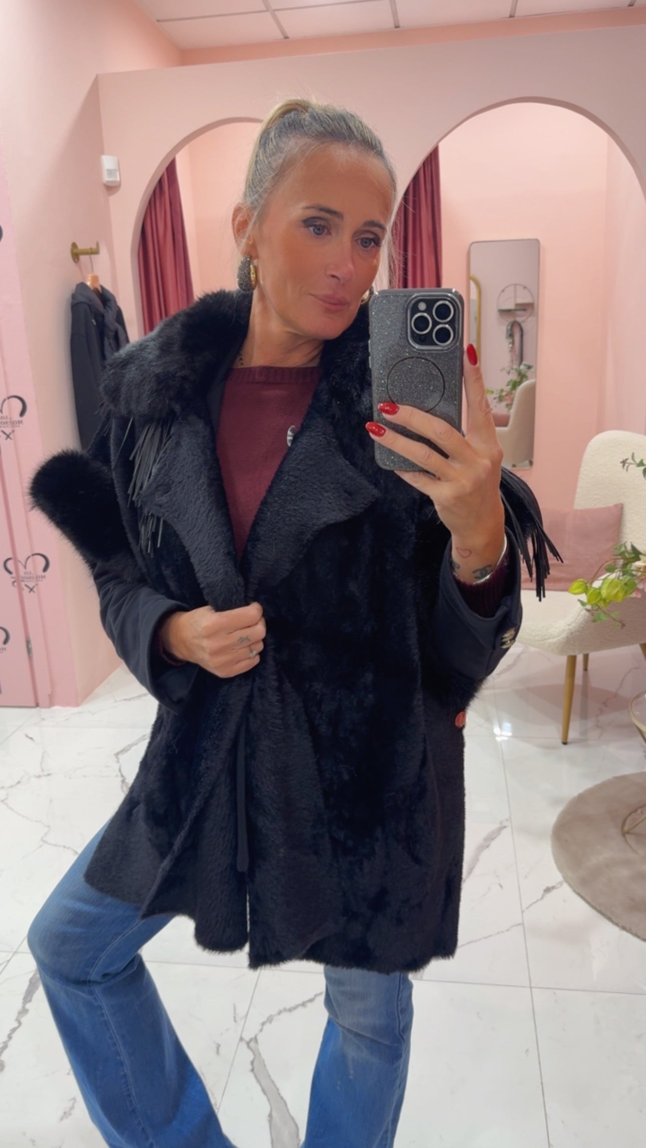 Smanicato con pelliccia eco e frange