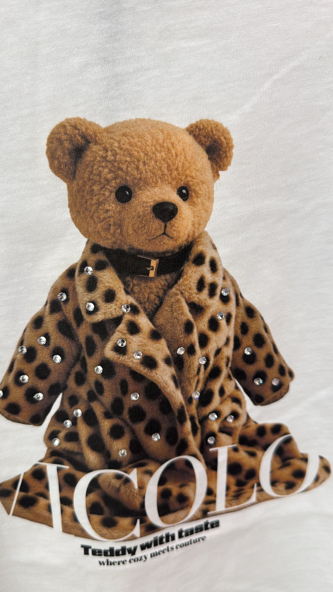 Maglietta cotone mezza manica stampa Teddy con brillantini