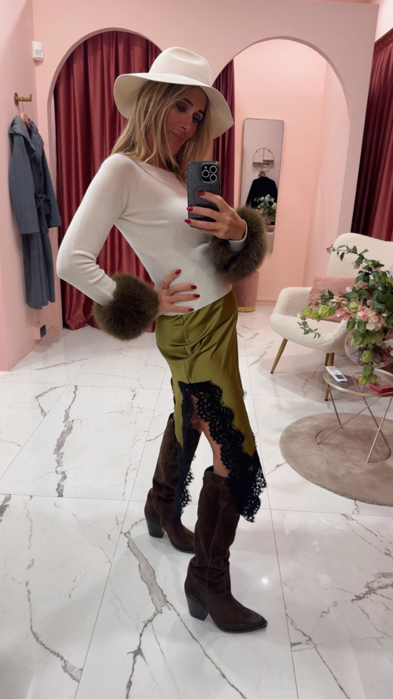 Stivale texano con tacco in pelle scamosciata